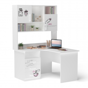 Стіл кутовий з надбудовою "Teenstyle" білий