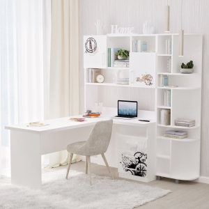 Кутовий стіл з надбудовою та еркером "Fashion" білий