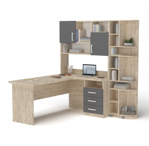 Стіл кутовий з надбудовою та еркером Дуб Шервуд + Графіт