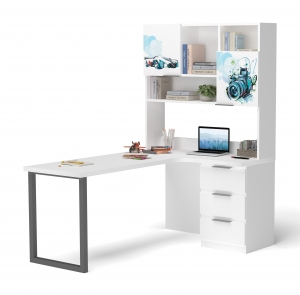 Стіл кутовий з надбудовою «Дрім» білий 1