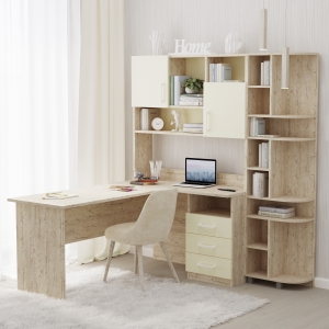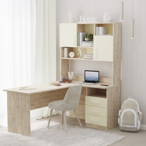 Стіл кутовий з надбудовою Дуб Шервуд + Ваніль