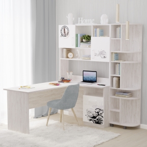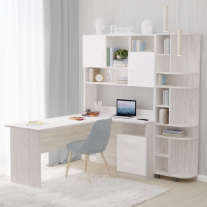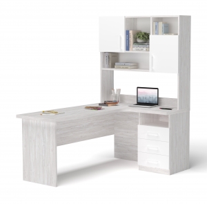 Кутовий стіл з надбудовою Дуб Шервуд з білим