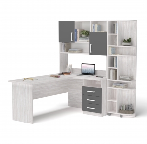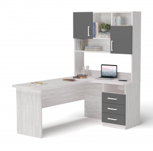 Стіл кутовий з надбудовою та еркером Аляска і Графіт