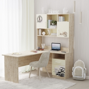 Стіл кутовий з надбудовою Дуб Шервуд з малюнком