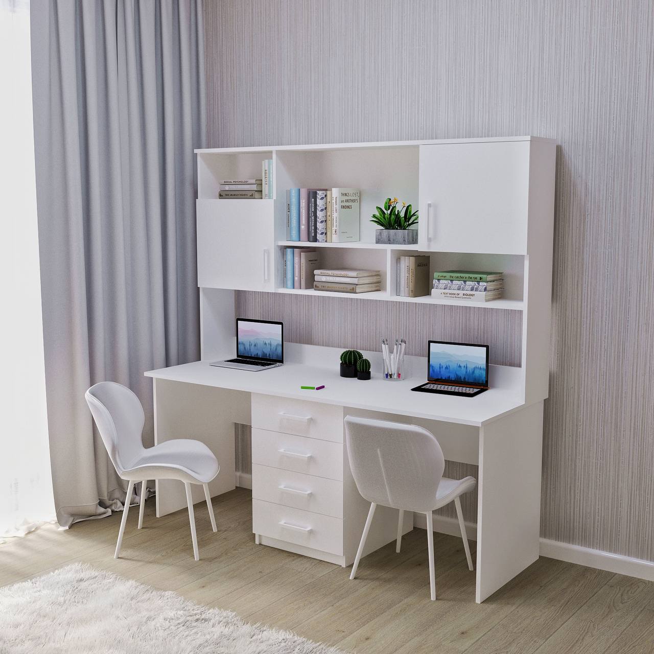 Зручний і місткий письмовий стіл, який має два робочіх місця, чудово підійде для розміщення всього необхідного шкільного приладдя Ваших дітей.
