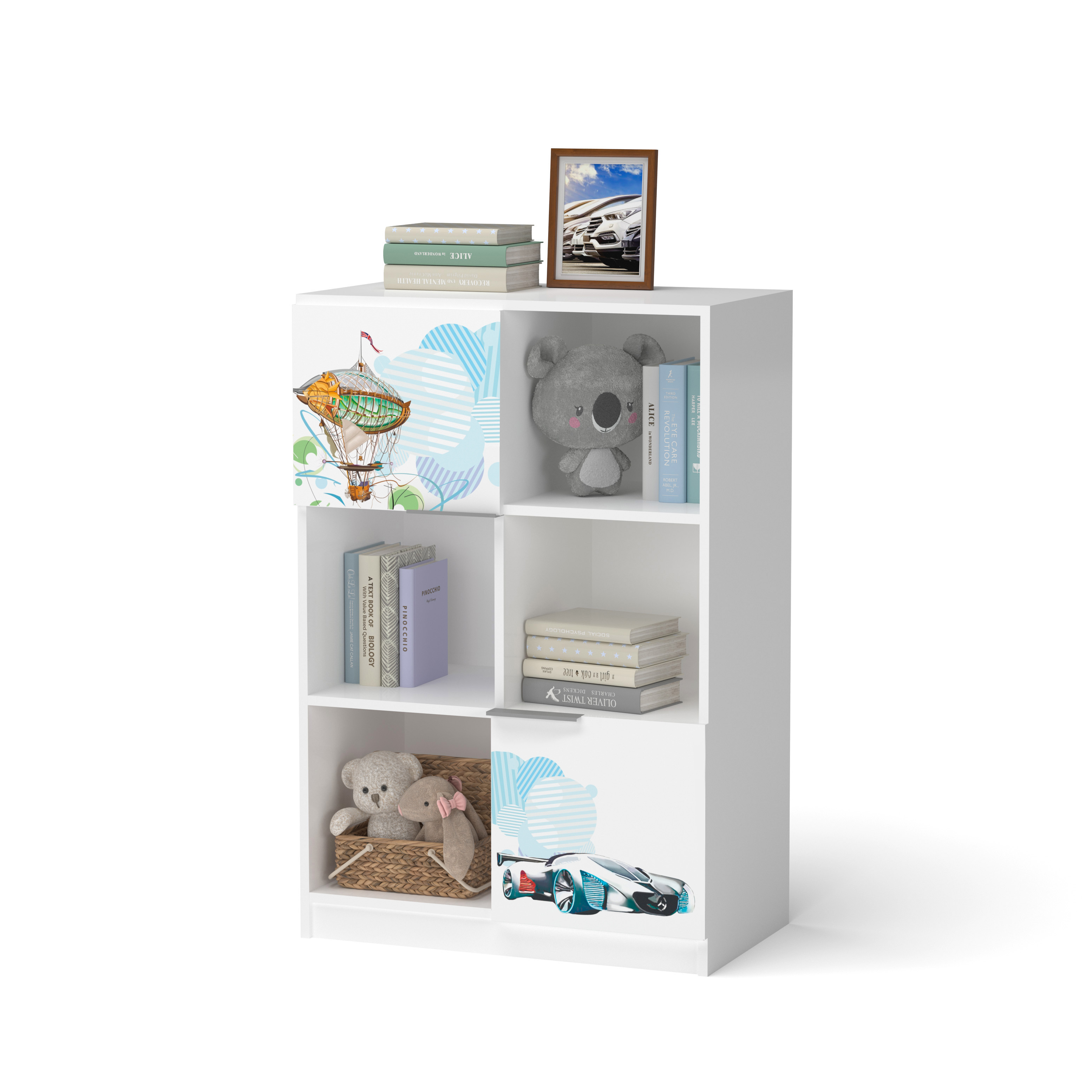 Етажерку можна використовувати як окремий предмет меблів або як перегородку між спальною та ігровою зоною. У ній є як закриті, так і відкриті полиці, а це не тільки зручно у використанні, а й красиво.