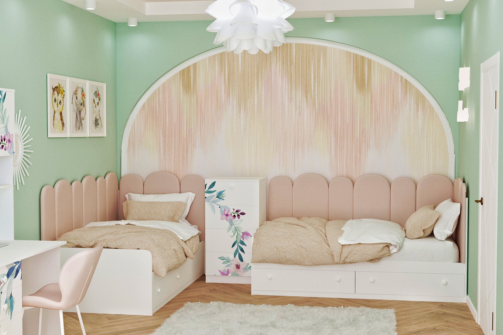 Ліжко "Еллі" 1 біле з рожевим