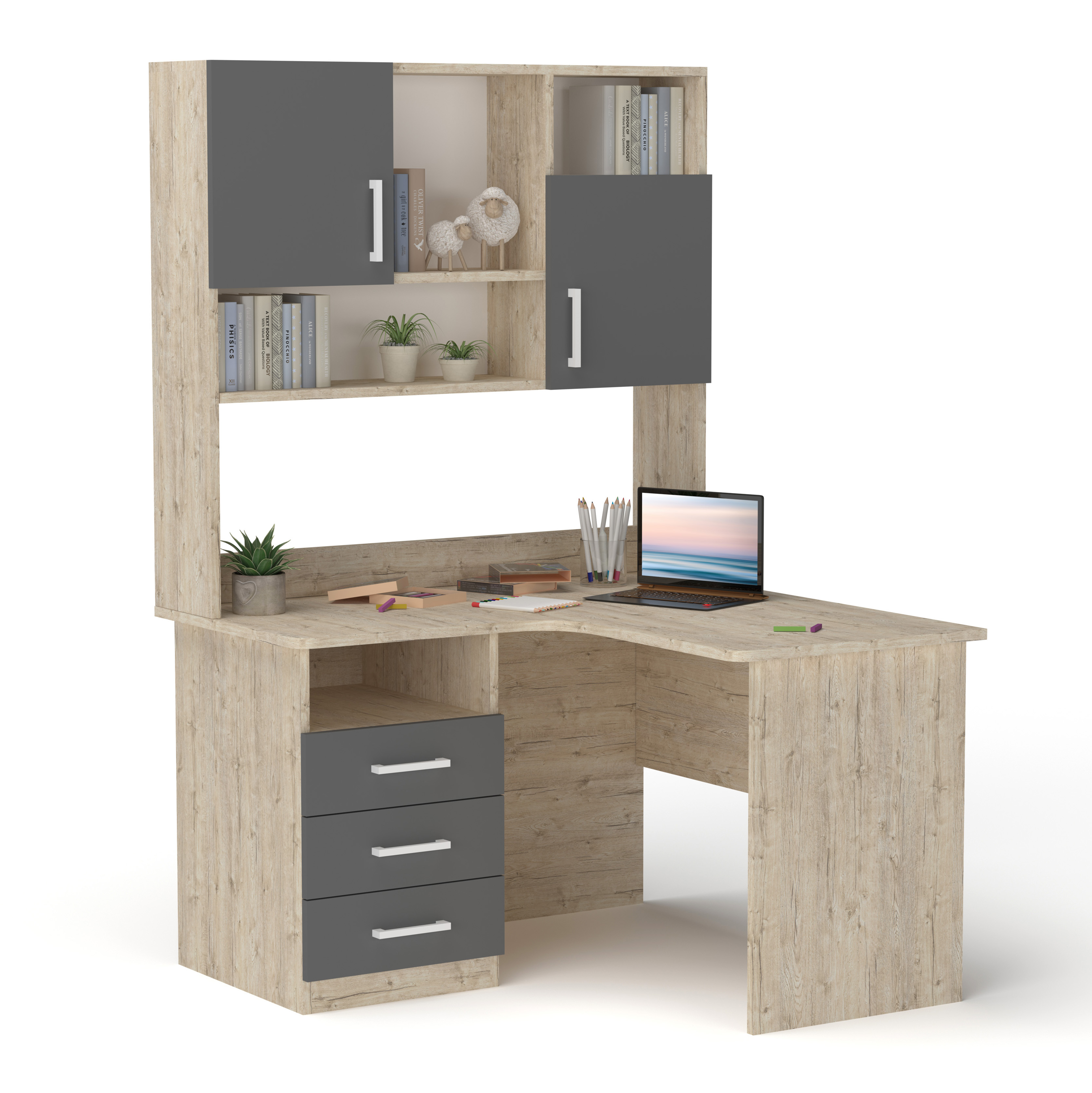 Кутовий стіл з надбудовою Дуб Шервуд + Графіт 1