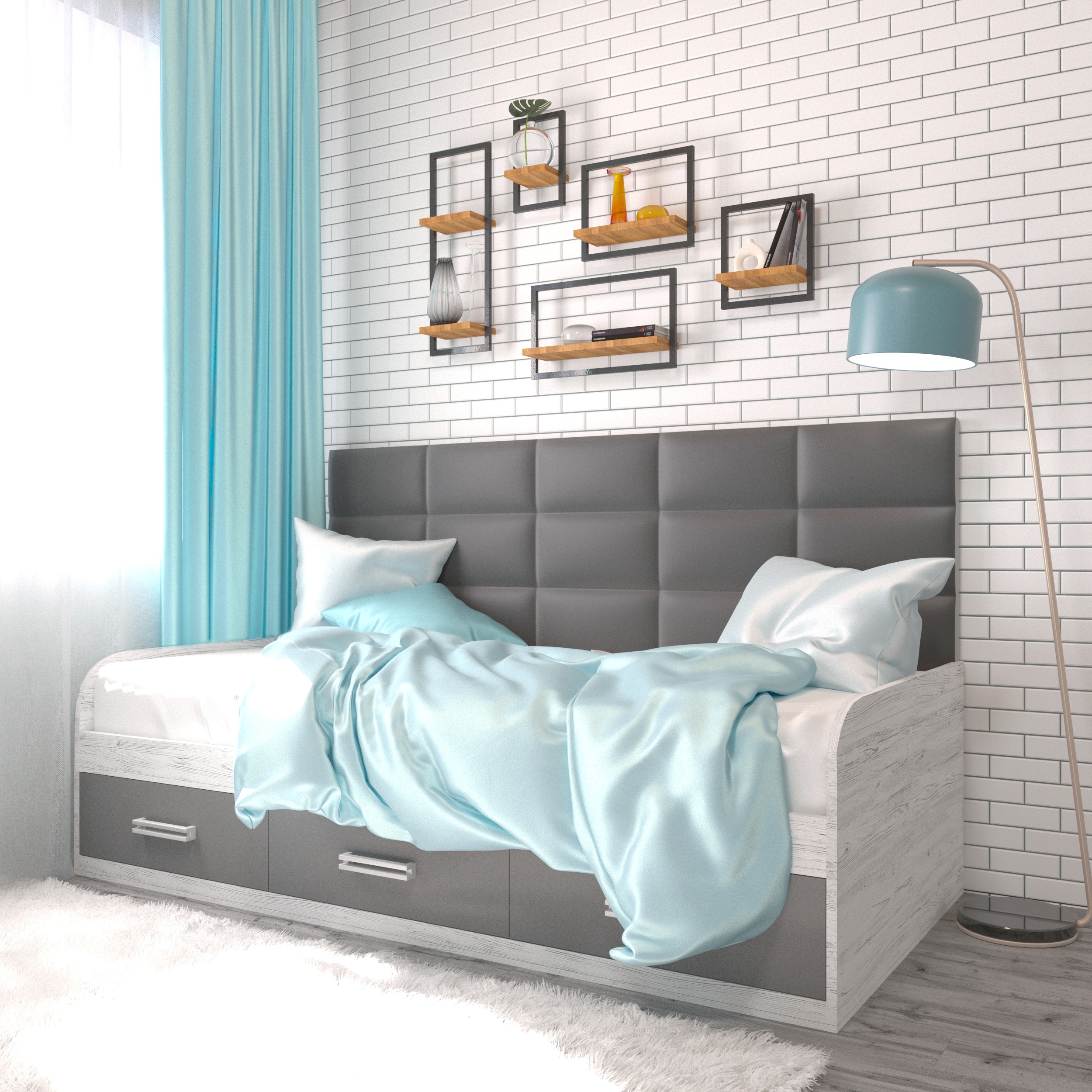 На такому ліжку затишно не тільки спати, а й сидіти, спираючись на м'яку спинку. А в шухлядах під ліжком зручно зберігати потрібні речі.