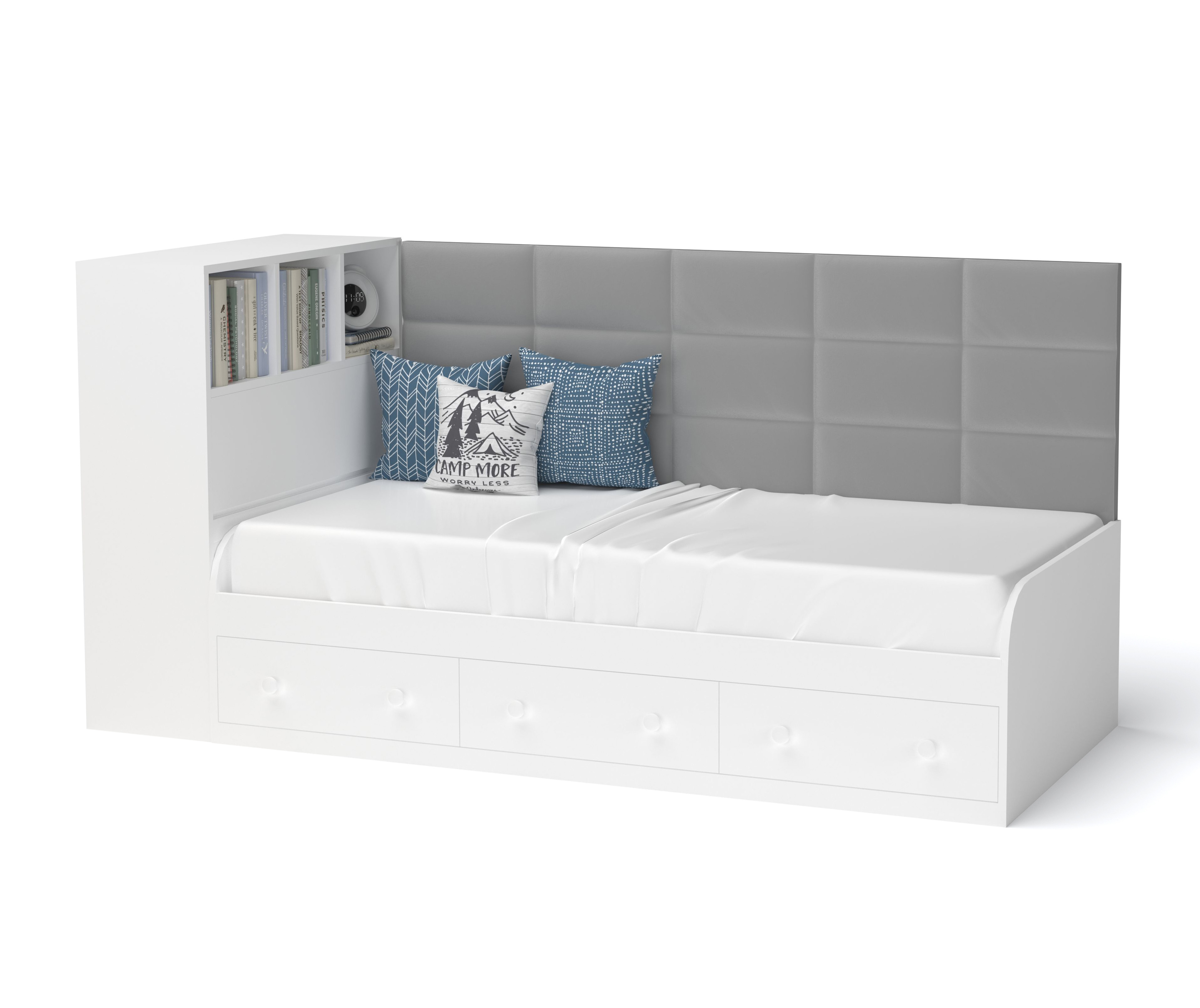 На такому ліжку зручно та затишно не тільки спати, а й сидіти, спираючись на м'яку спинку. Полички, короб для білизни та шухляди під ліжком дозволять зручно зберігати необхідні речі.