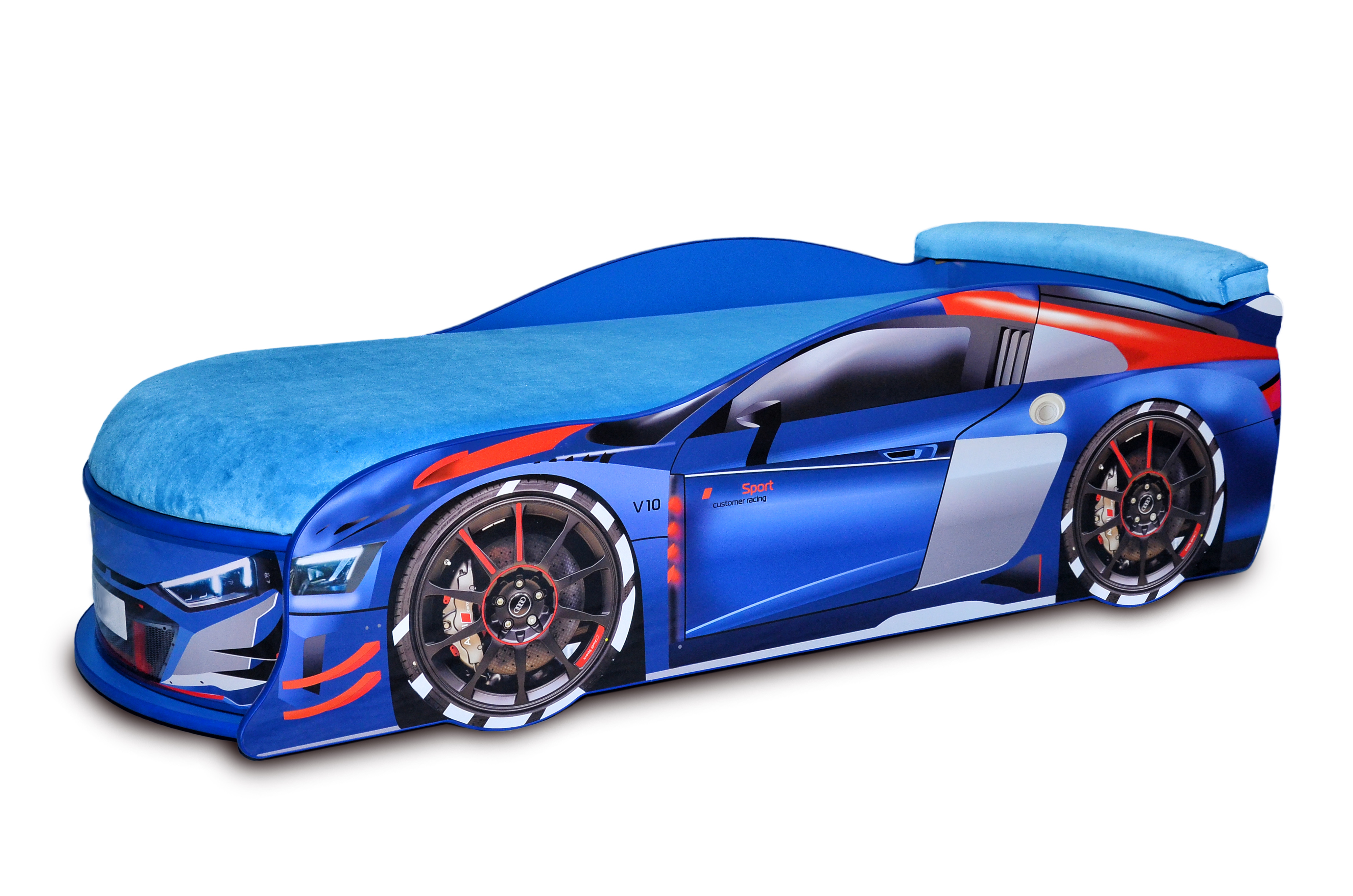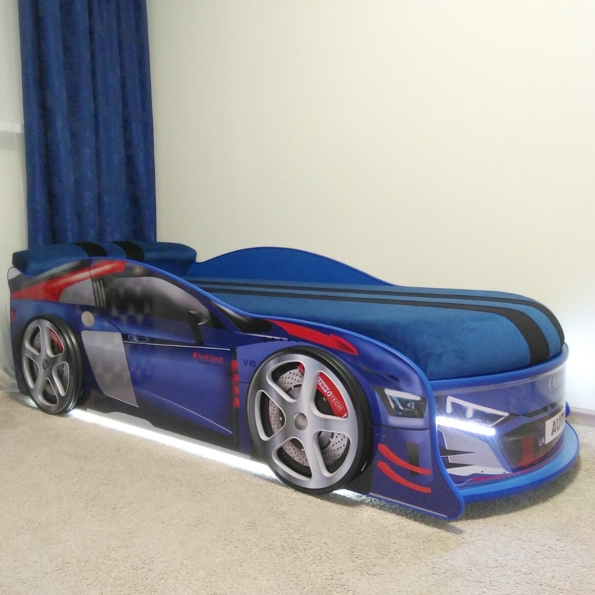 Ефектна світлодіодна підсвітка для фар та боковин. Підсвітка однокольорова, білого кольору. Живлення від розетки. Сама світлодіодна стрічка добре захищена від прямого доступу дитини.
