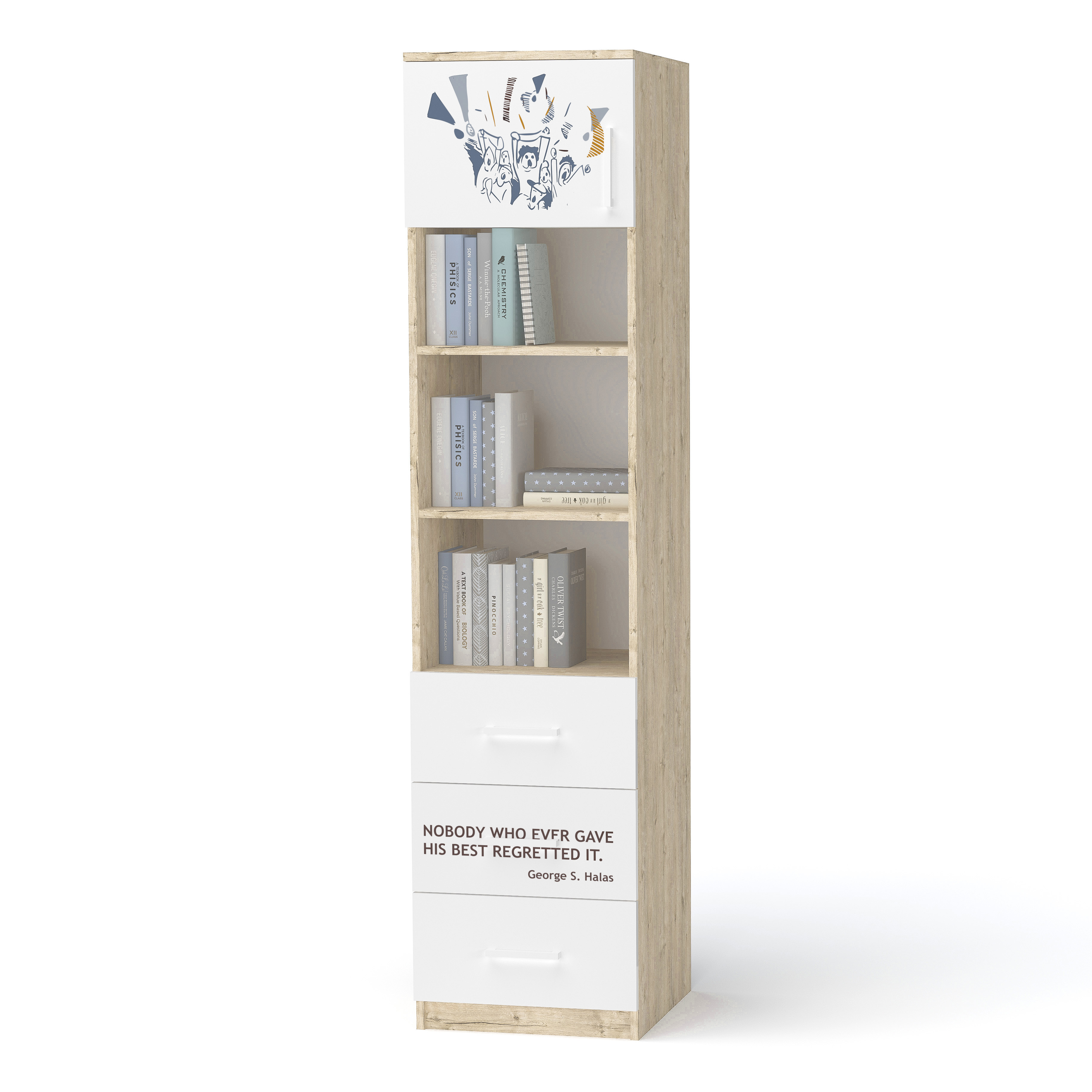 У пеналі цієї комплектації є як відкриті полиці, так і секції з дверцятами, а також три шухляди.