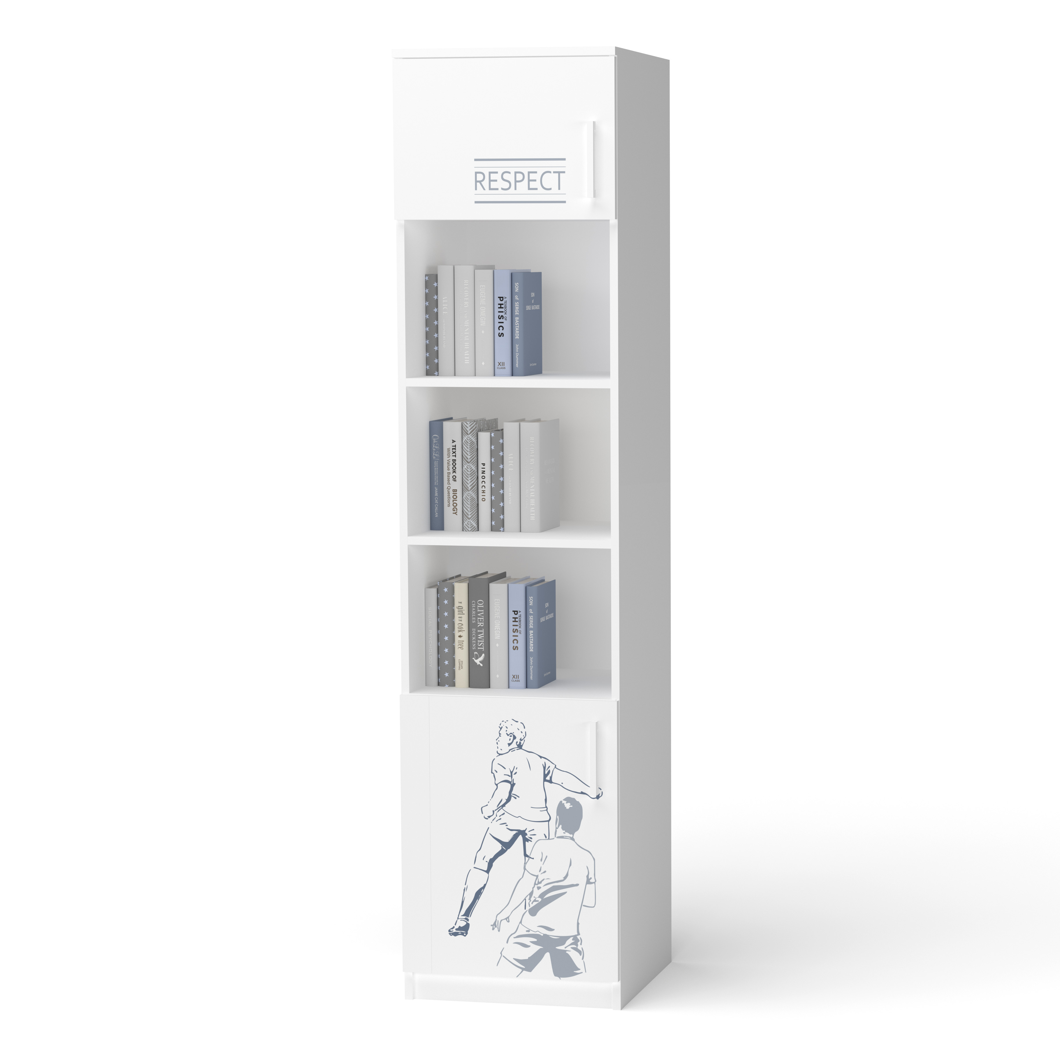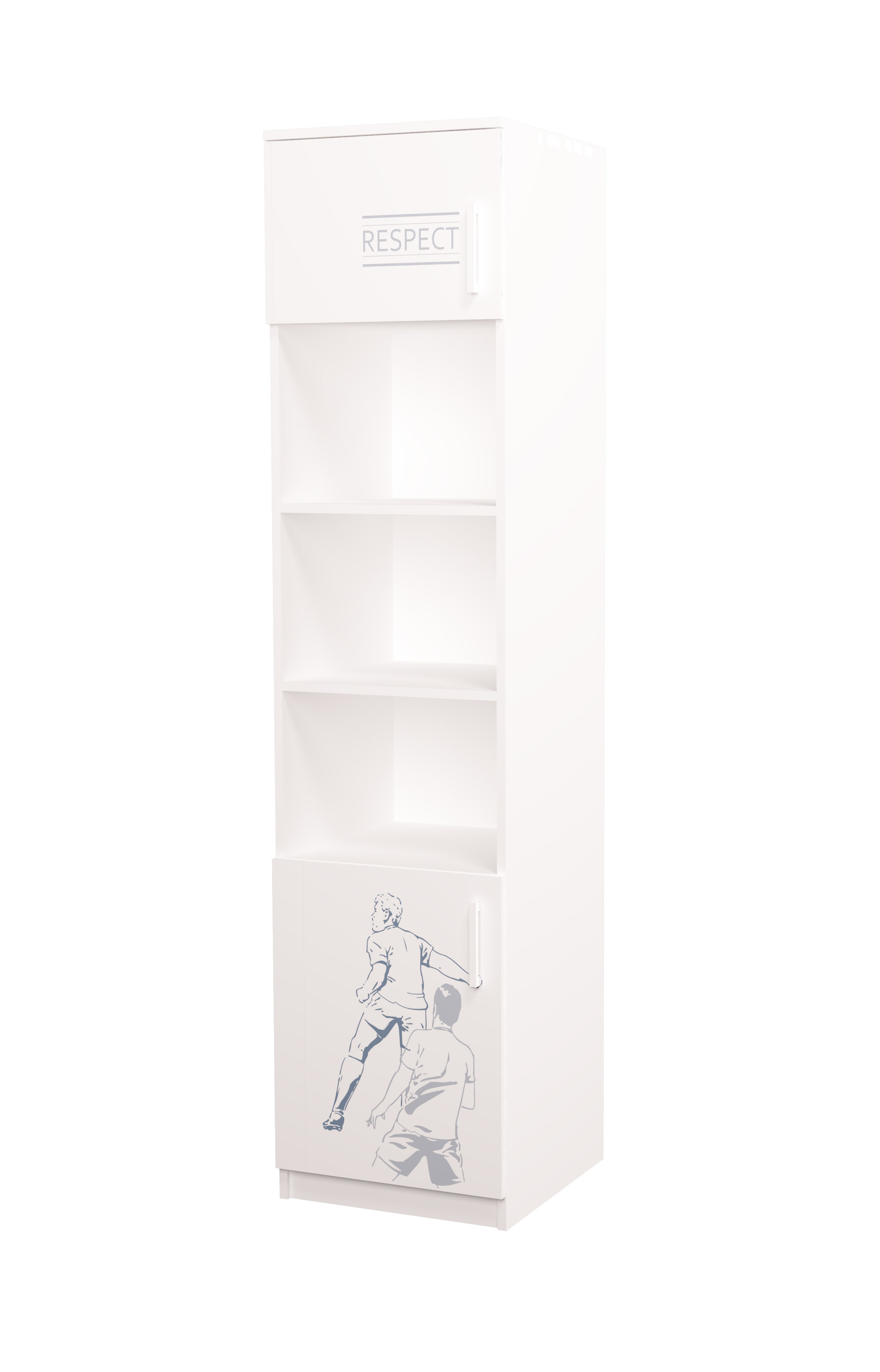 У пеналі цієї комплектації є як відкриті полиці, так і секції з дверцятами.