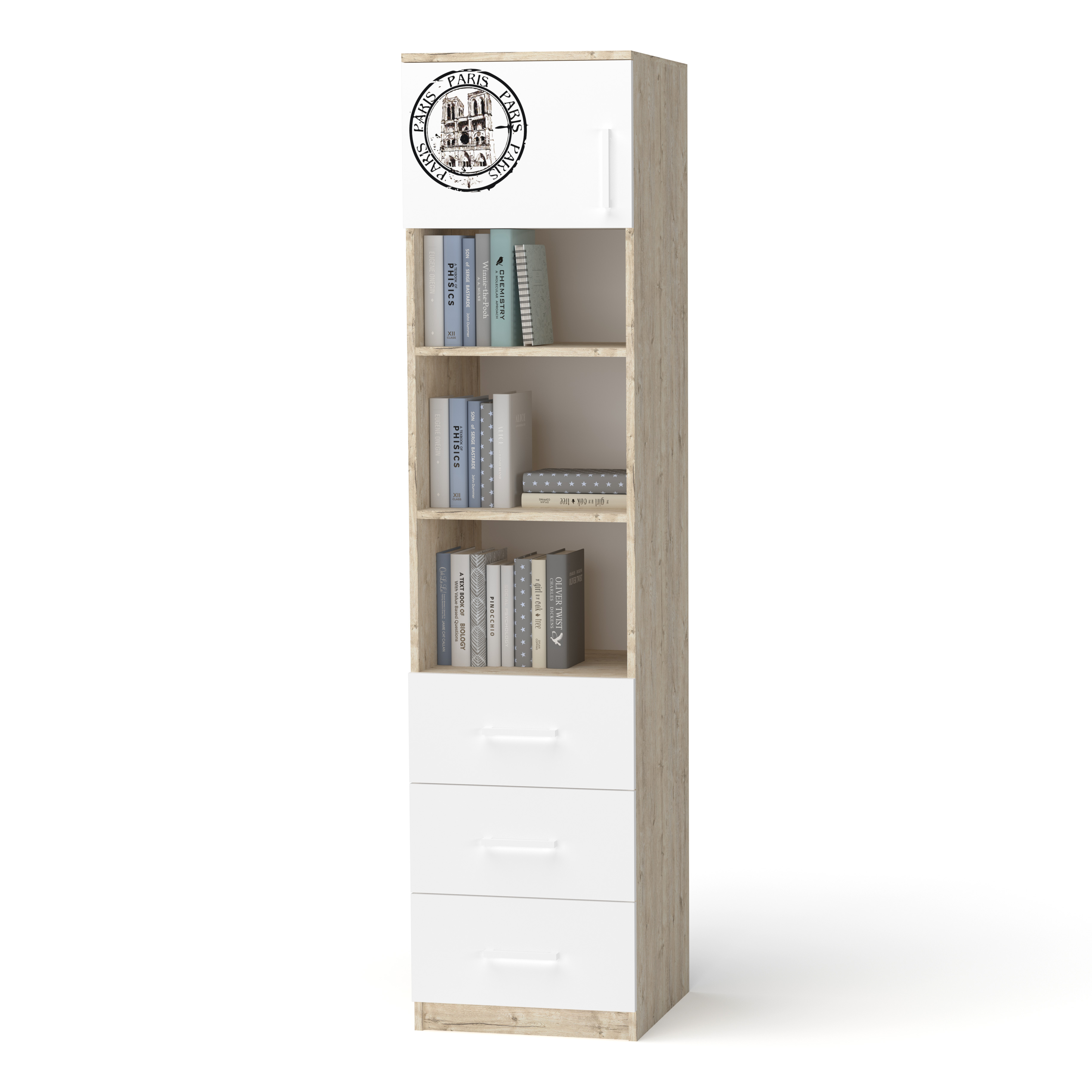 Пенал "Junior" із шухлядами Дуб Шервуд + Білий + малюнок