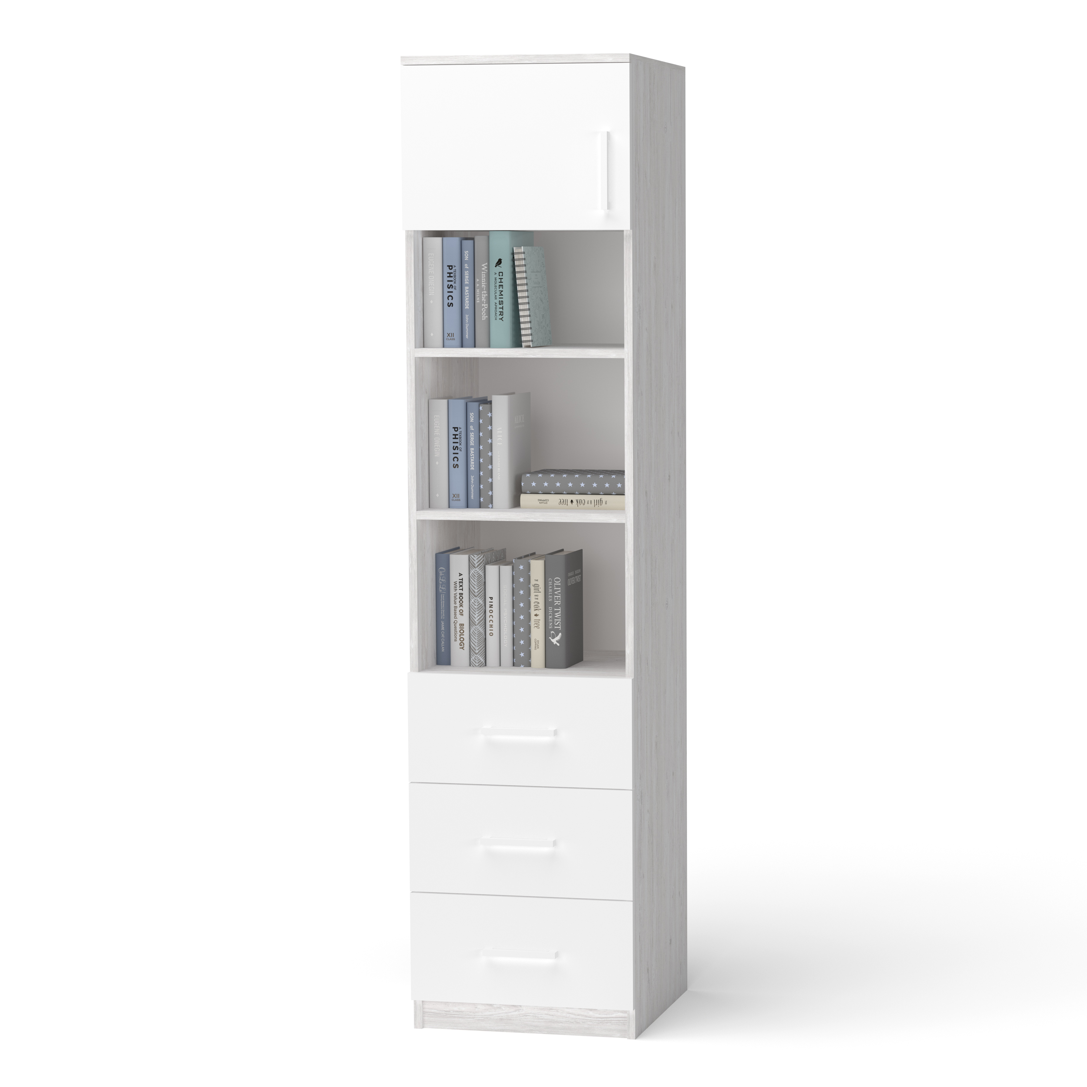 У пеналі цієї комплектації відкриті полички, секція з дверцятами та три шухляди.