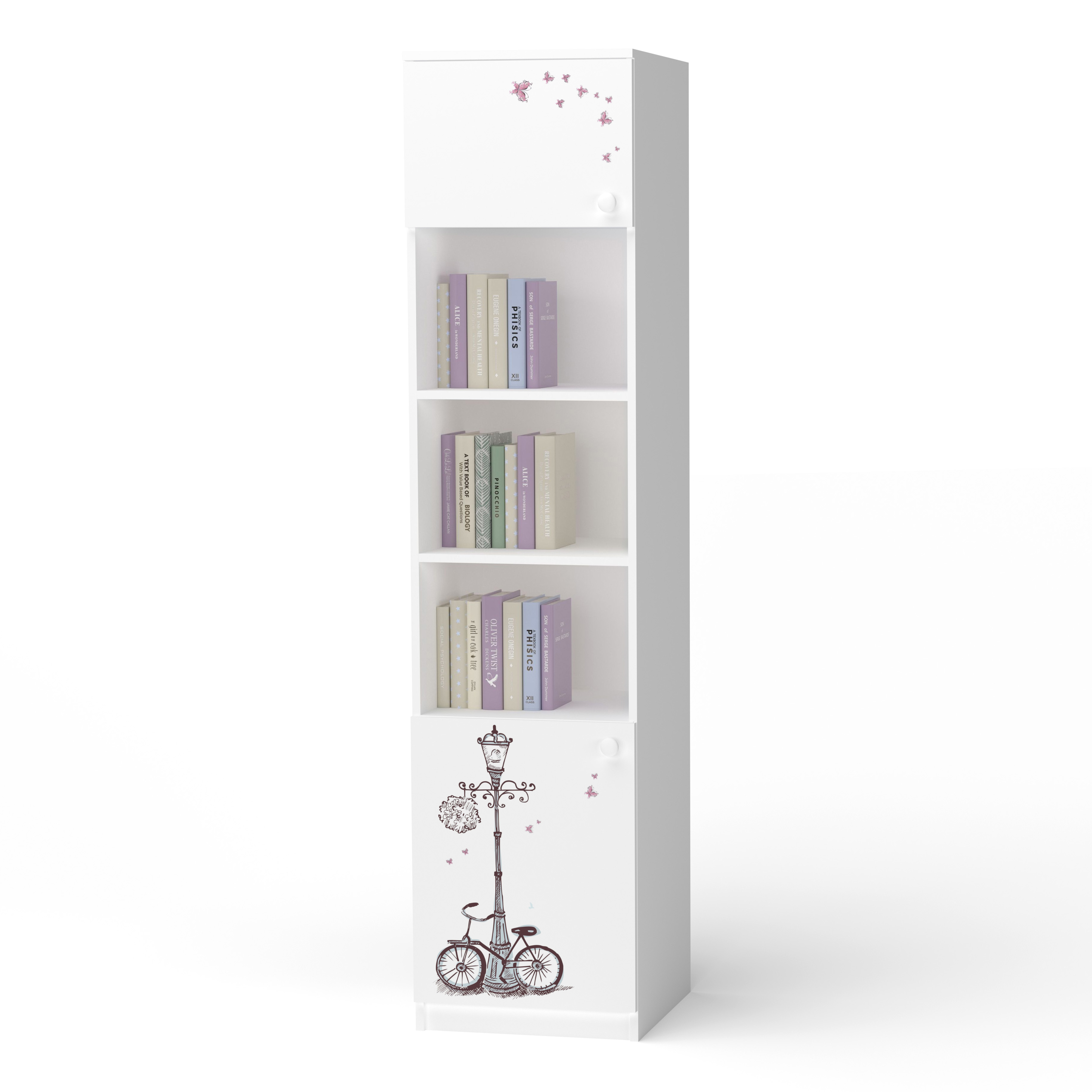У пеналі цієї комплектації є як відкриті полиці, так і секції з дверцятами.
