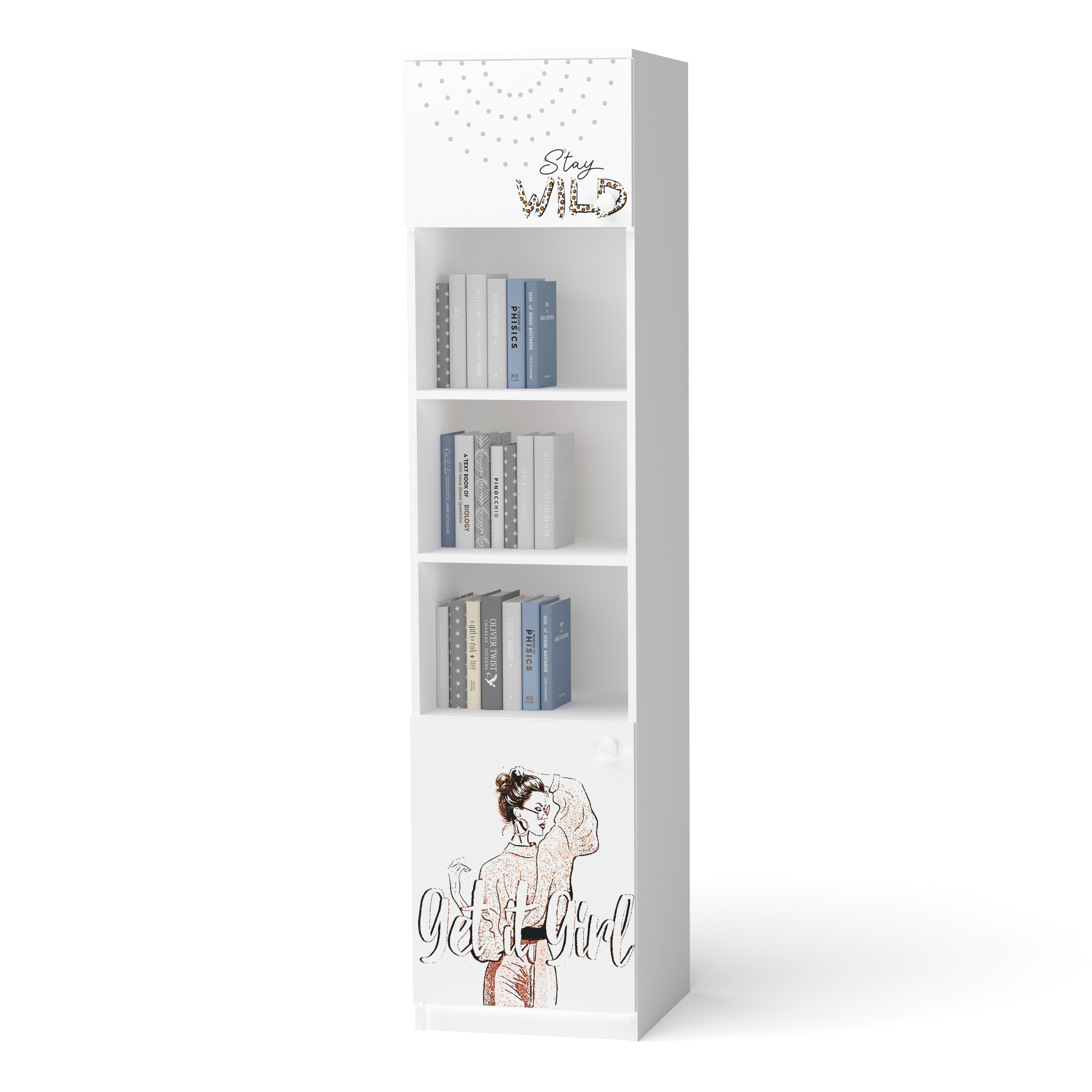 У пеналі цієї комплектації є як відкриті полиці, так і секції з дверцятами.