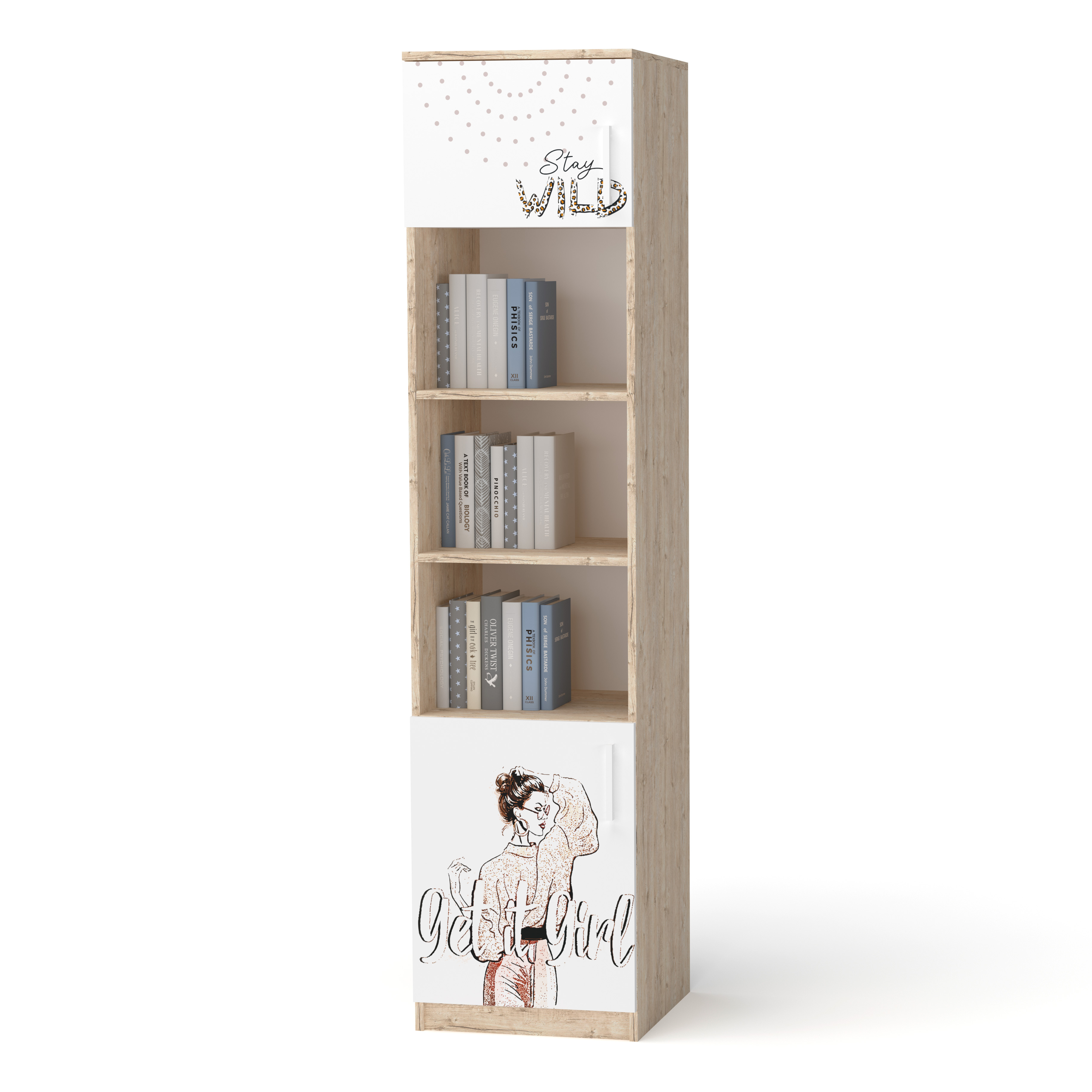 • Корпус виготовлений з ЛДСП Swisspan, колір "Дуб Шервуд", фасади - екологічне австрійське ЛДСП Egger білого кольору, товщина плити 18 мм.