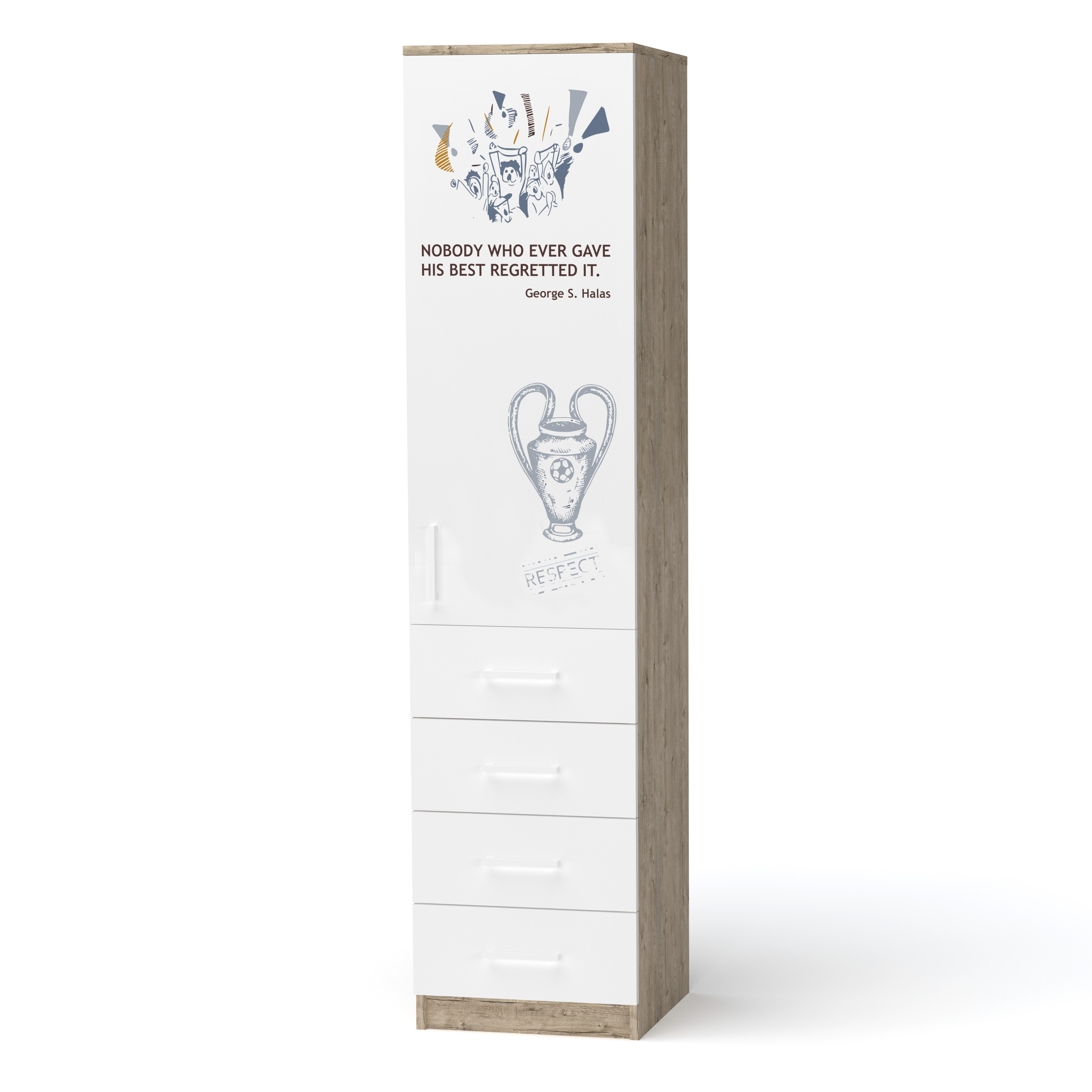 - Корпус виконано з ЛДСП Swisspan колір «Дуб Шервуд», фасади - ЛДСП Egger білого кольору.