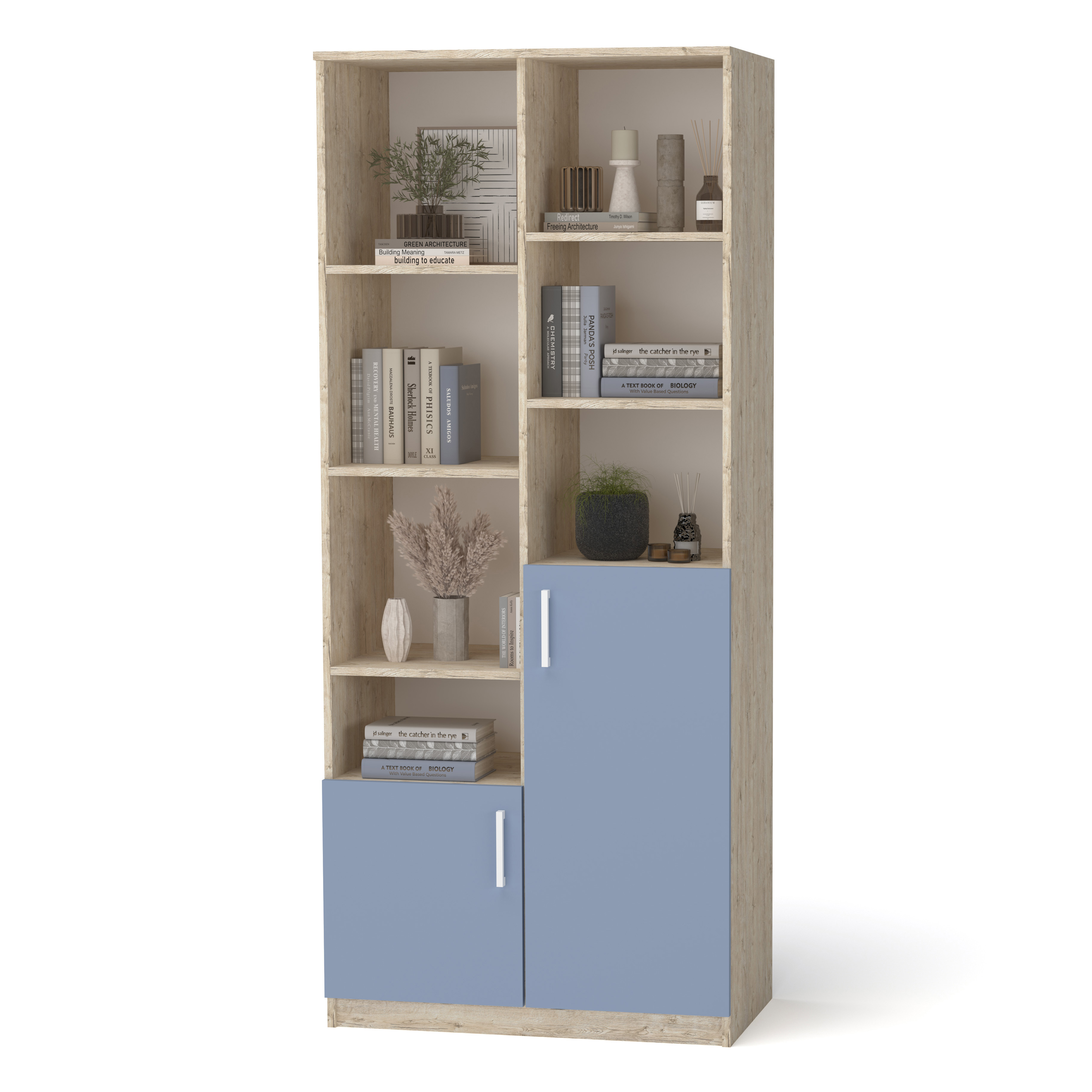 • Корпус виконано  ЛДСП Swisspan Колір  "Дуб Шервуд", Фасади ЛДСП " Egger " колір "Туманно блакитний", товщина плити 18 мм.
