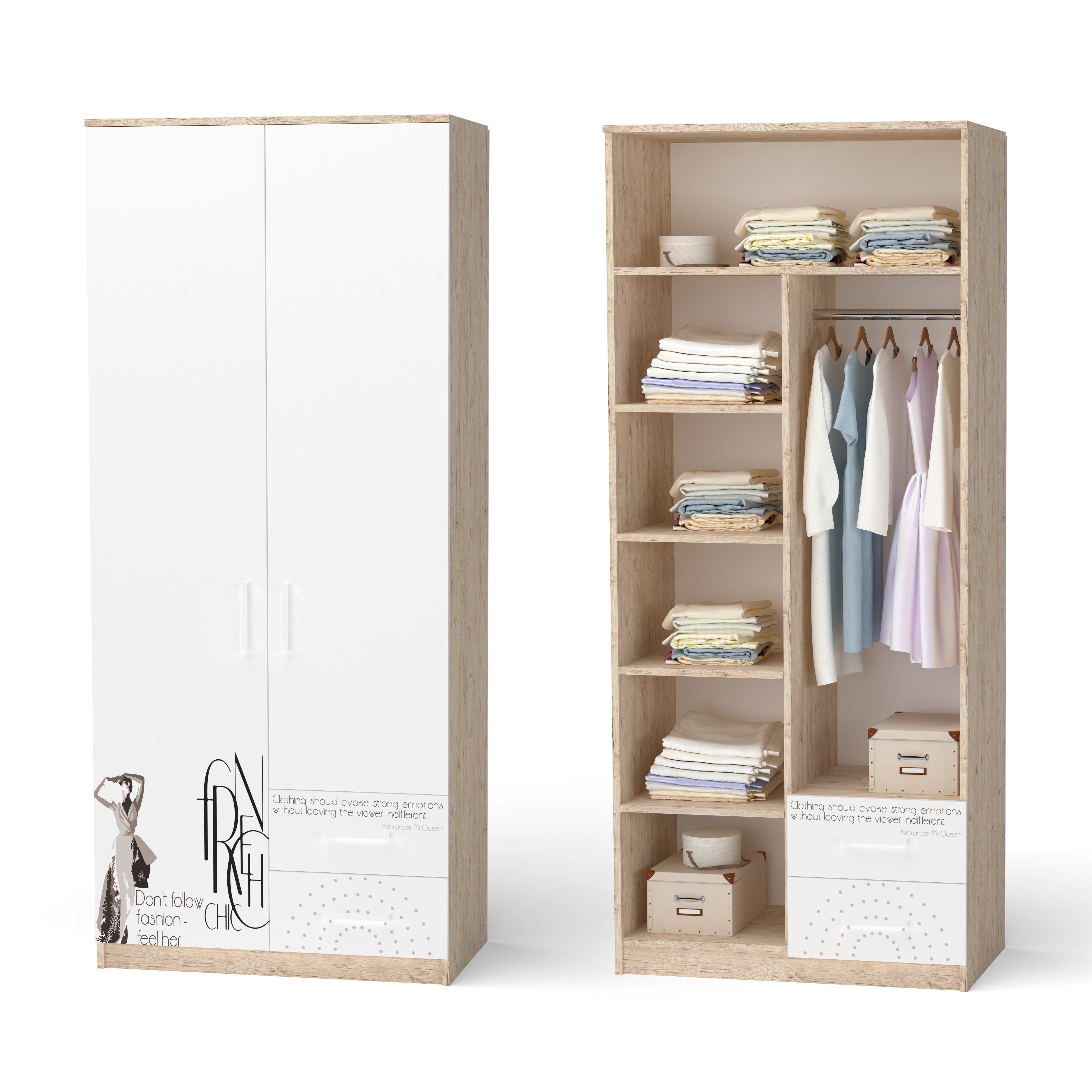 • Матеріал корпусу  ЛДСП Swisspan ( колір дуб шервуд),  фасади ЛДСП Egger колір білий, товщина 18мм