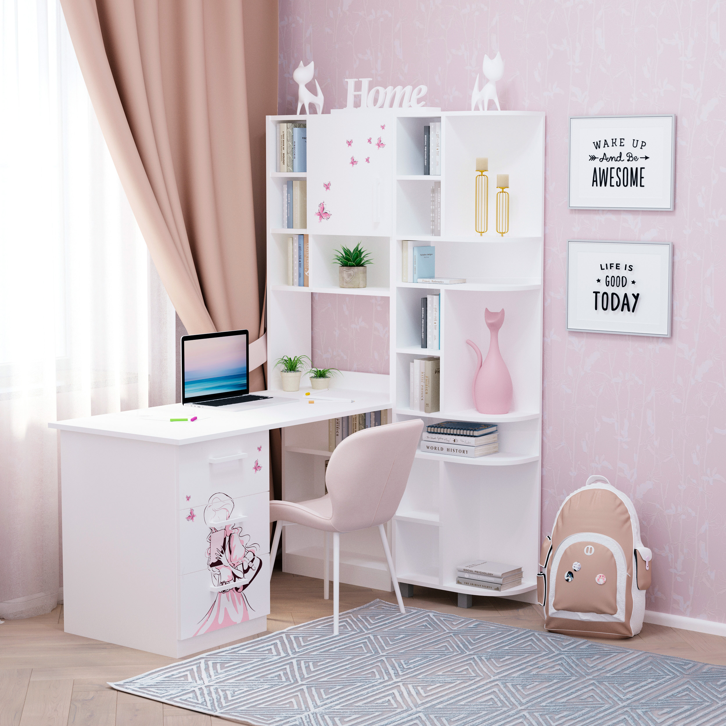 Стіл кутовий з надбудовою "Teenstyle" білий