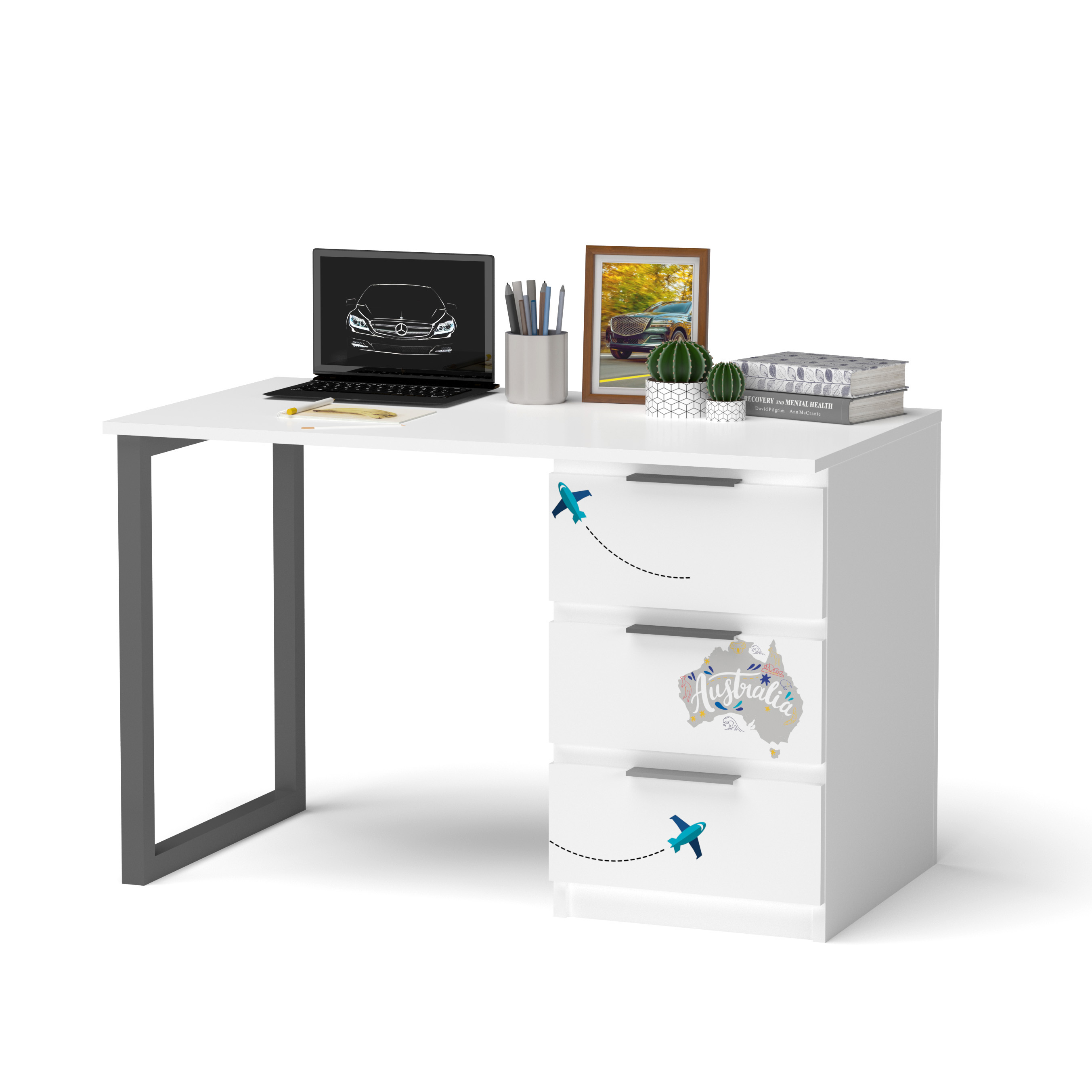 Письмовий стіл із широкою стільницею та трьома зручними шухлядами буде компактним і комфортним місцем для навчання вашої дитини та зберігання її шкільного приладдя.