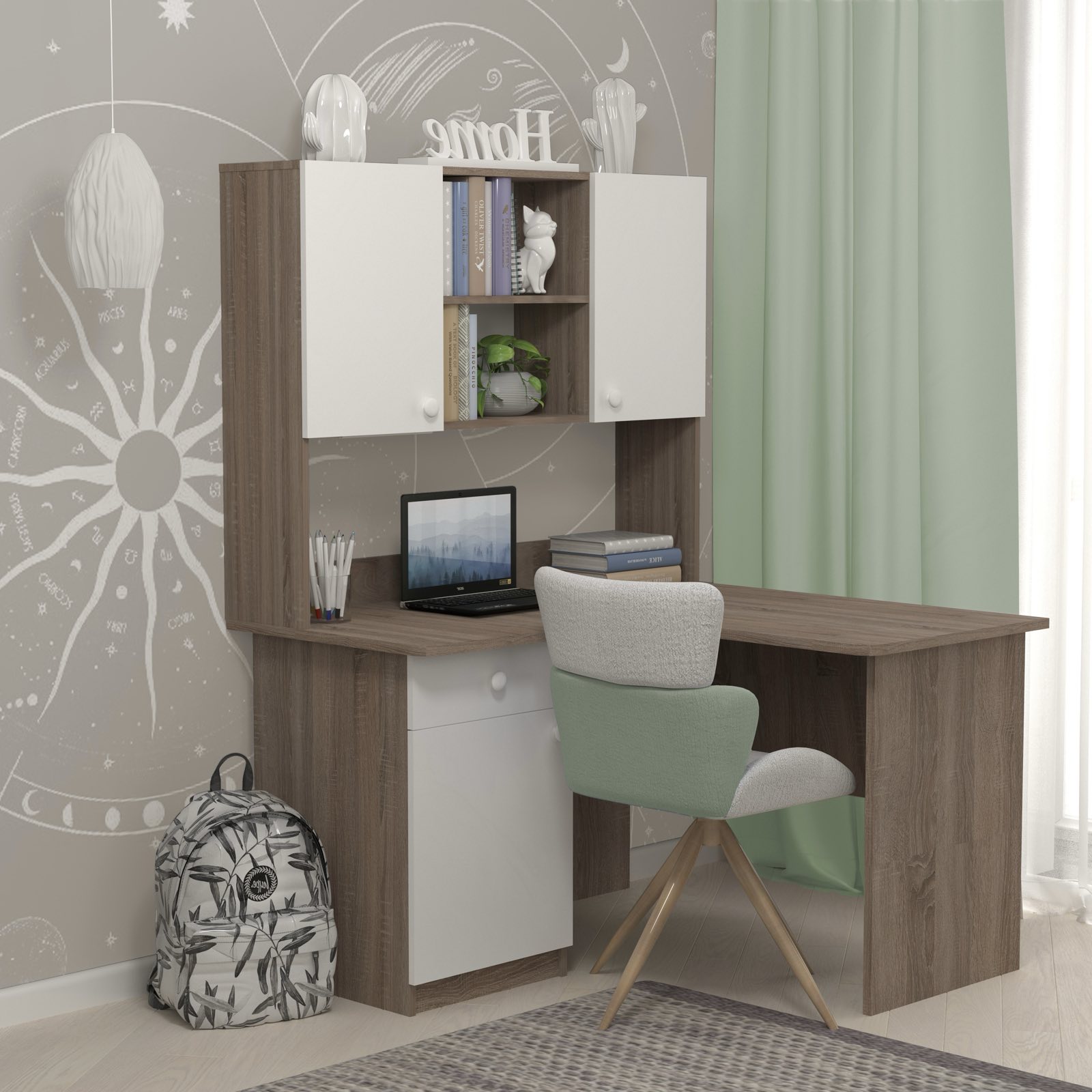 Кутовий стіл із надбудовою буде зручним для розміщення шкільного приладдя та книжок вашої дитини.