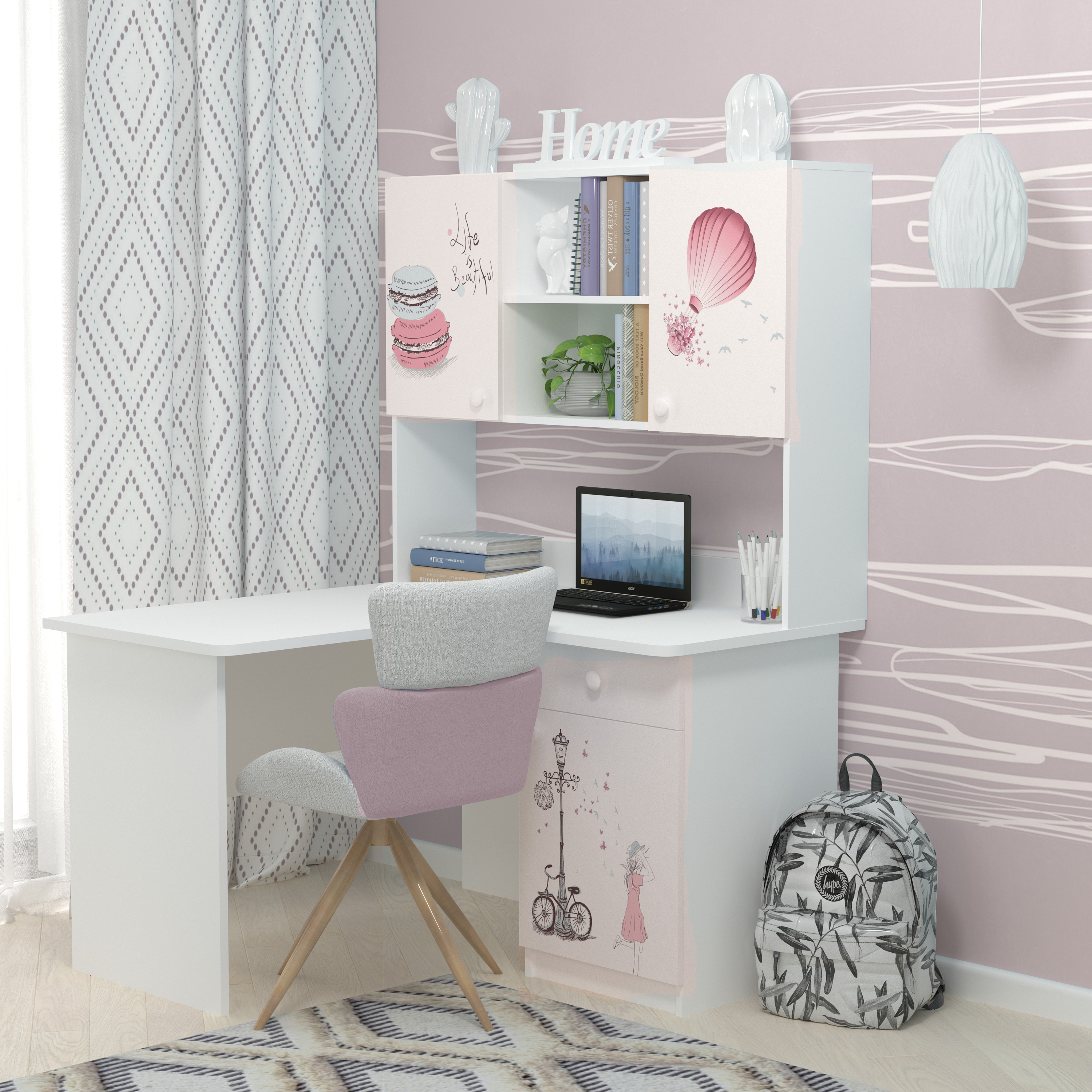 Кутовий стіл із надбудовою буде зручним для розміщення шкільного приладдя та книжок вашої дитини.