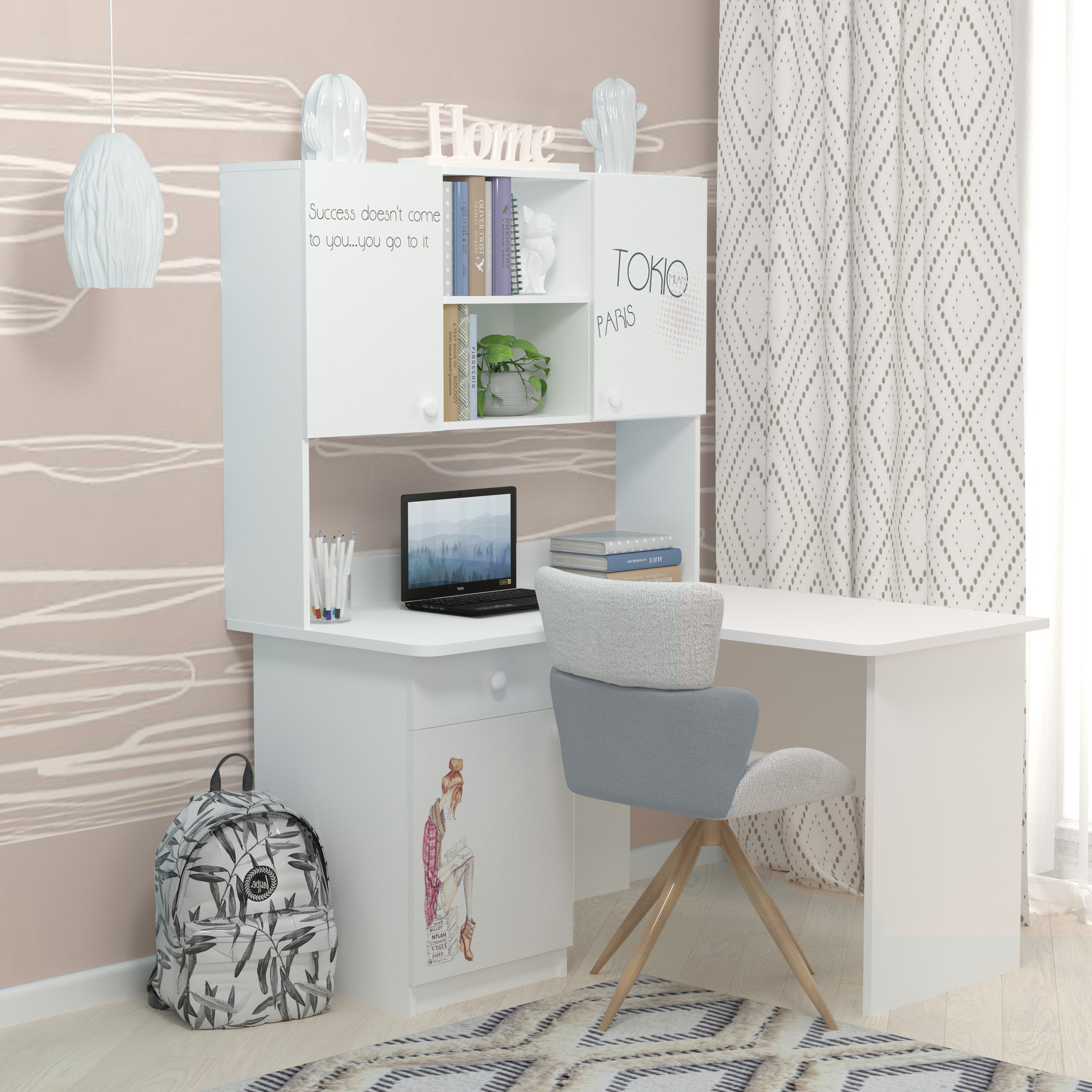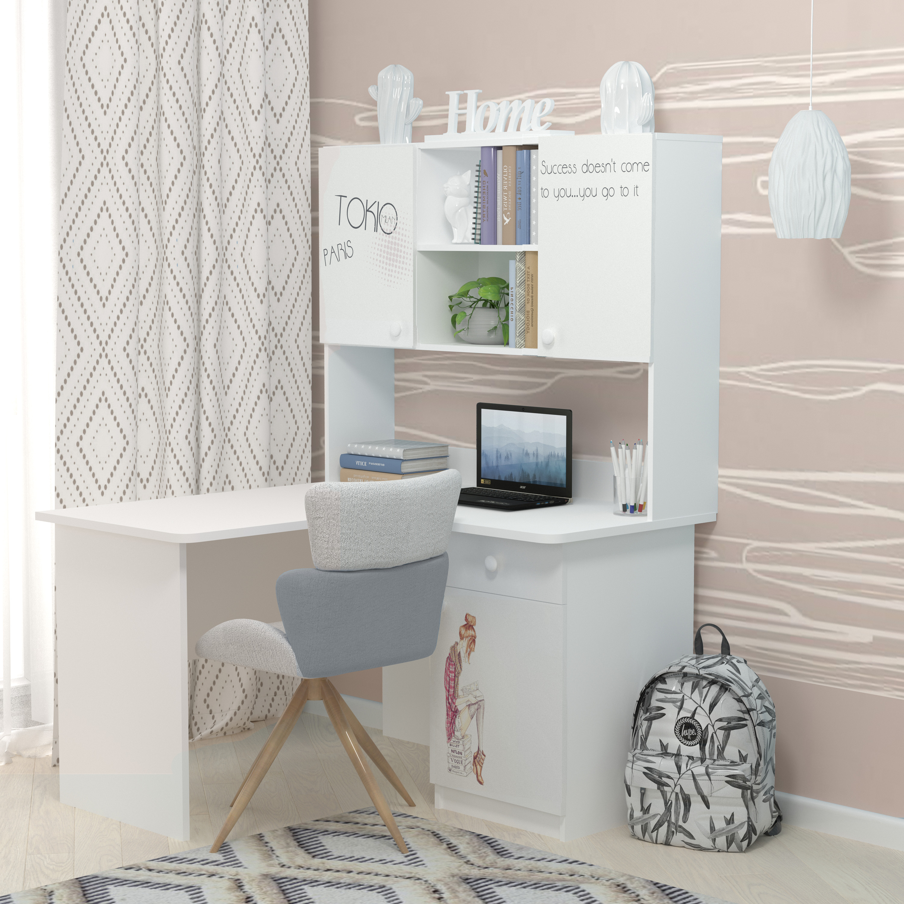 Кутовий стіл із надбудовою буде зручним для розміщення шкільного приладдя та книжок вашої дитини.