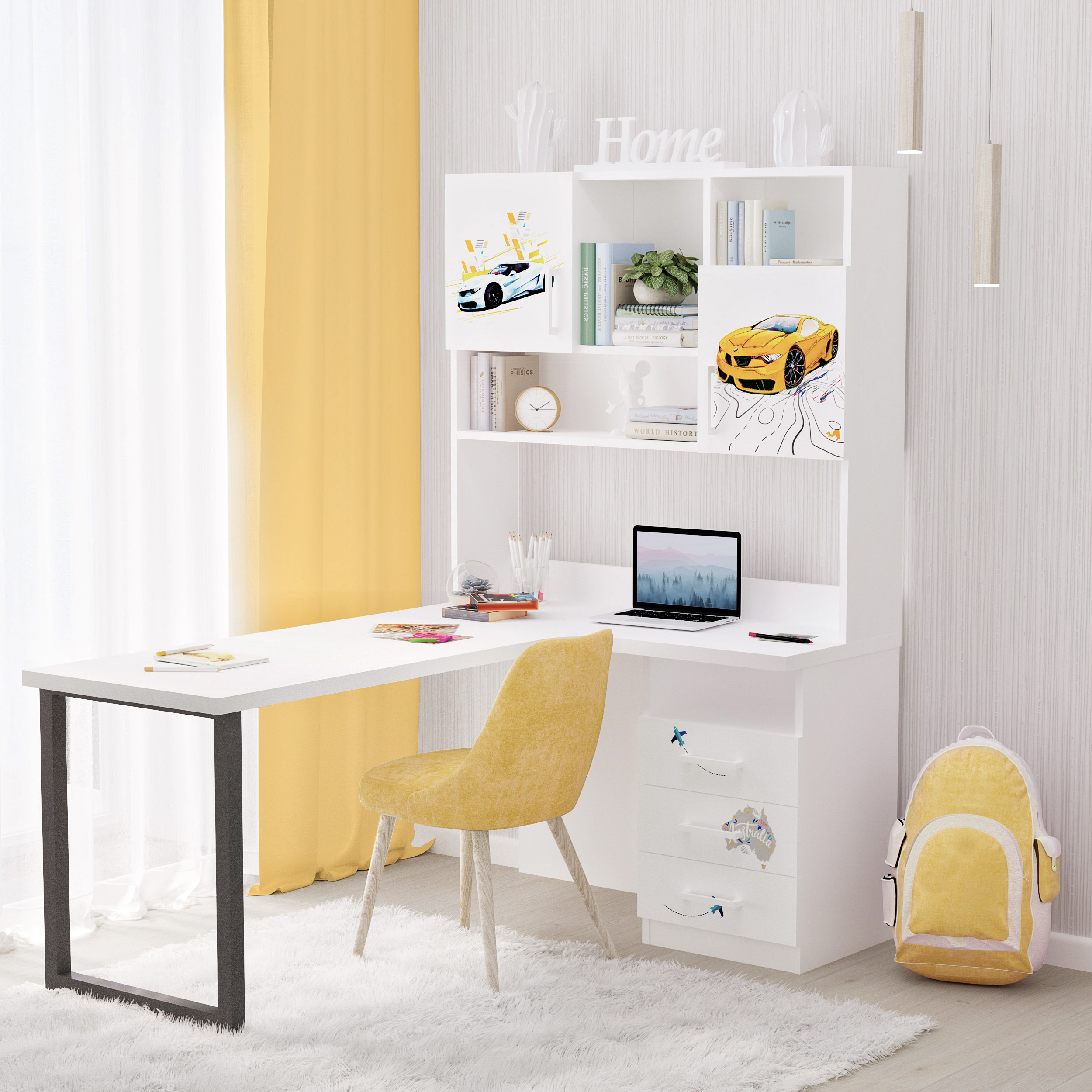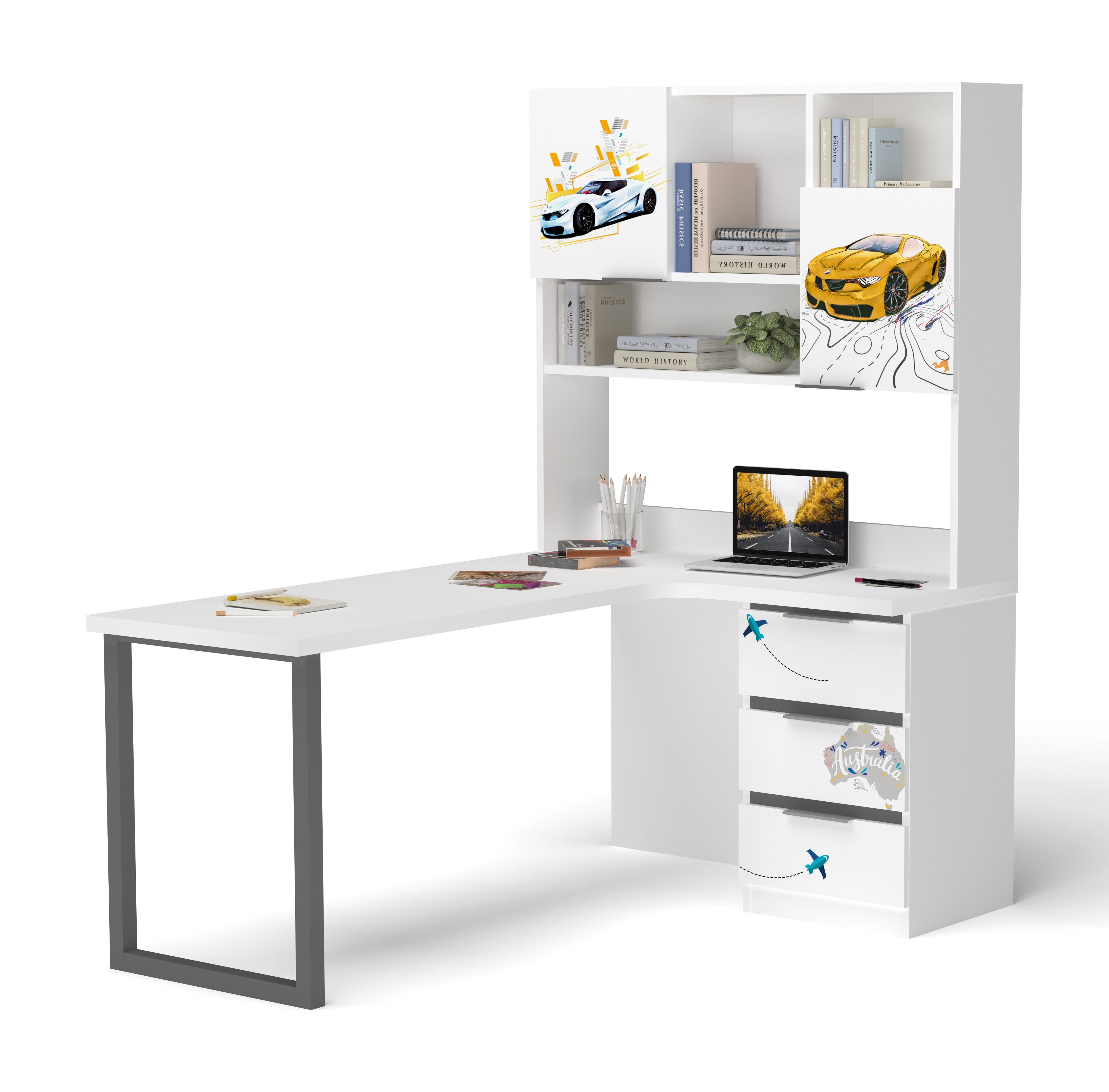 Письмовий стіл з кутовою стільницею та надбудовою буде дуже зручним для розміщення всього шкільного приладдя, матеріалів для творчості та хобі вашої дитини. А велика стільниця дозволить зручно розмістити на столі все необхідне.