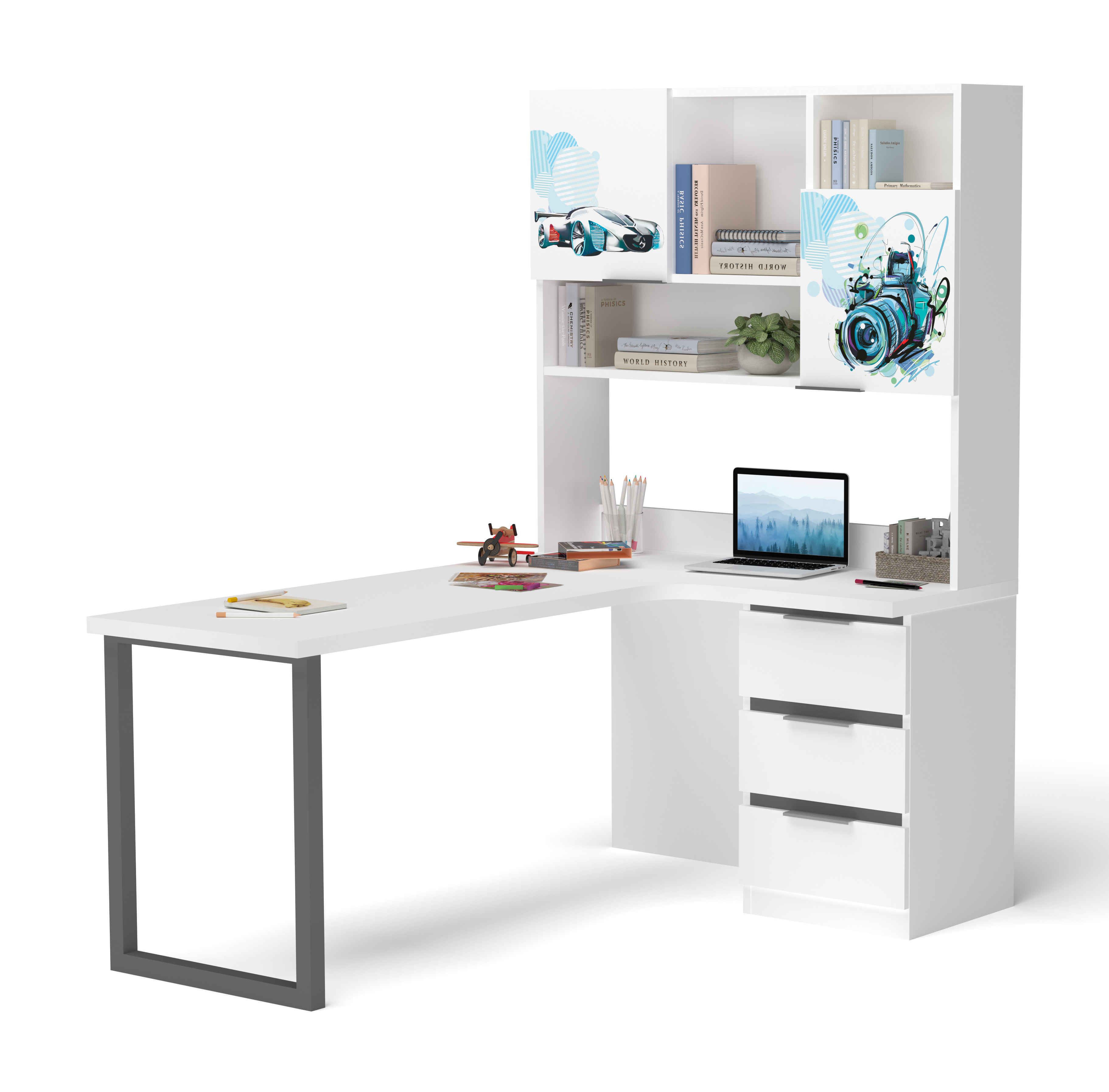 Письмовий стіл з кутовою стільницею та надбудовою буде дуже зручним для розміщення всього шкільного приладдя, матеріалів для творчості та хобі вашої дитини. А велика стільниця дозволить зручно розмістити на столі все необхідне.