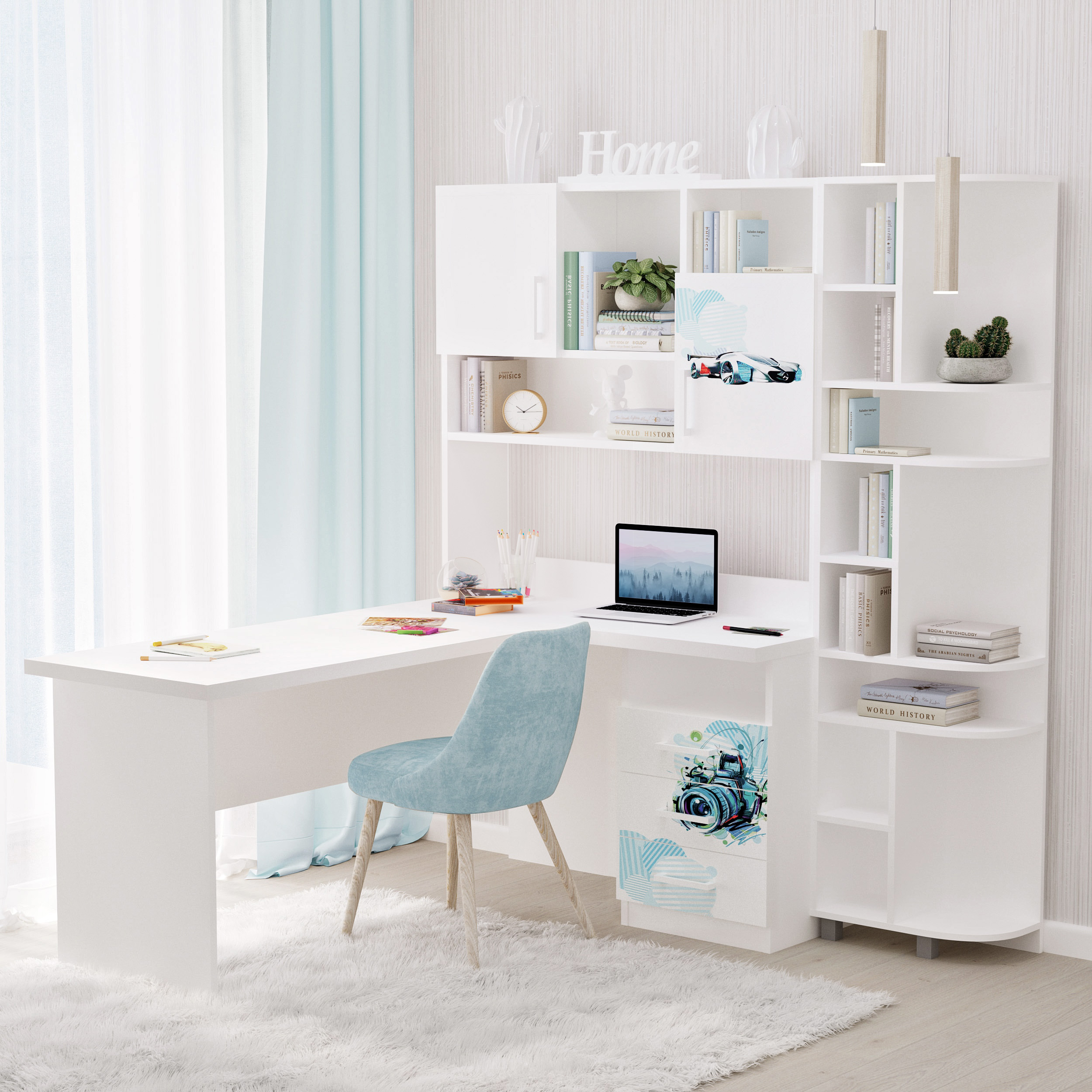 Письмовий стіл з кутовою стільницею і надбудовою та еркером буде дуже зручний для розміщення всього шкільного приладдя, матеріалів для творчості та хобі вашої дитини. А велика стільниця дозволить зручно розмістити на столі все необхідне.