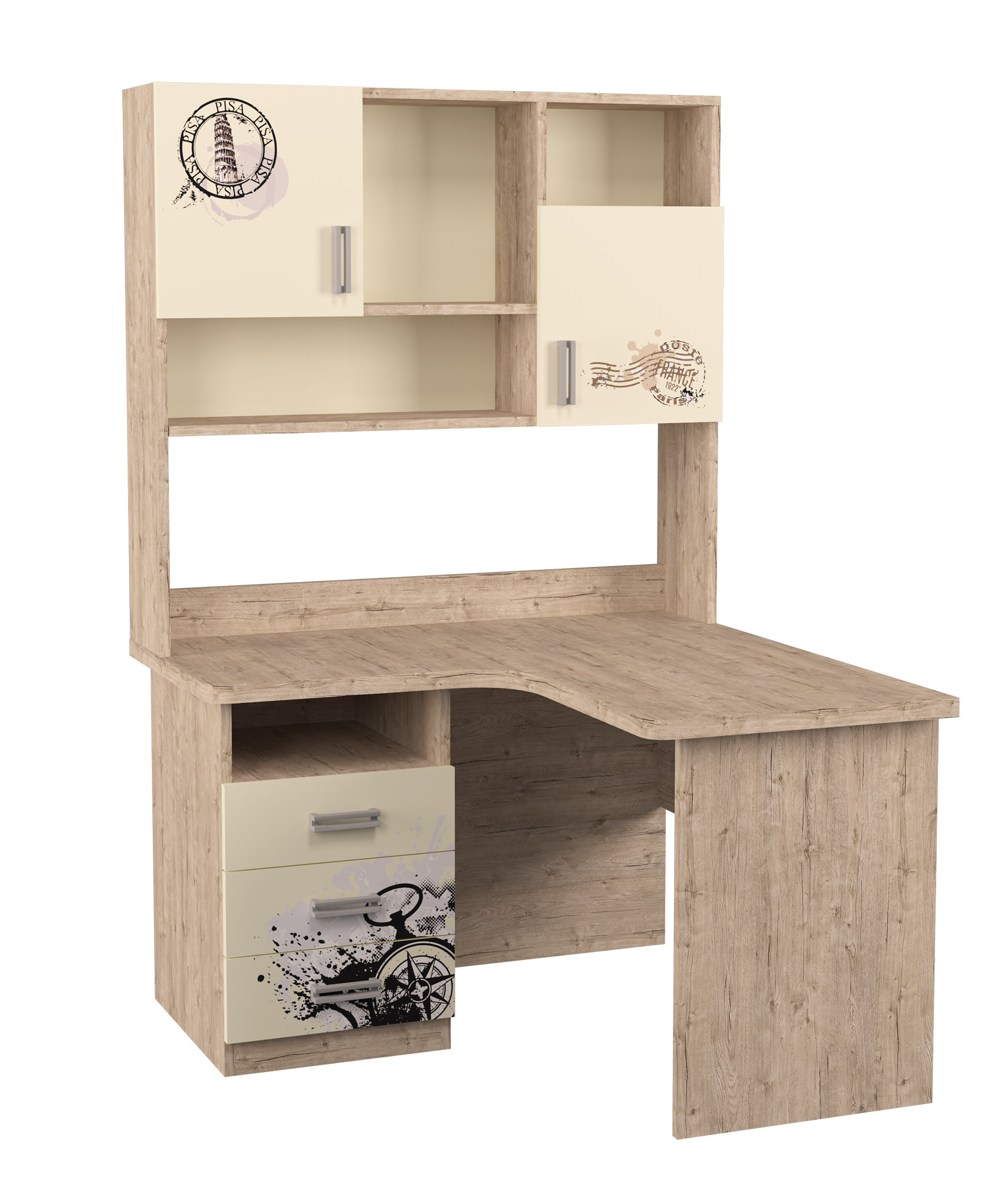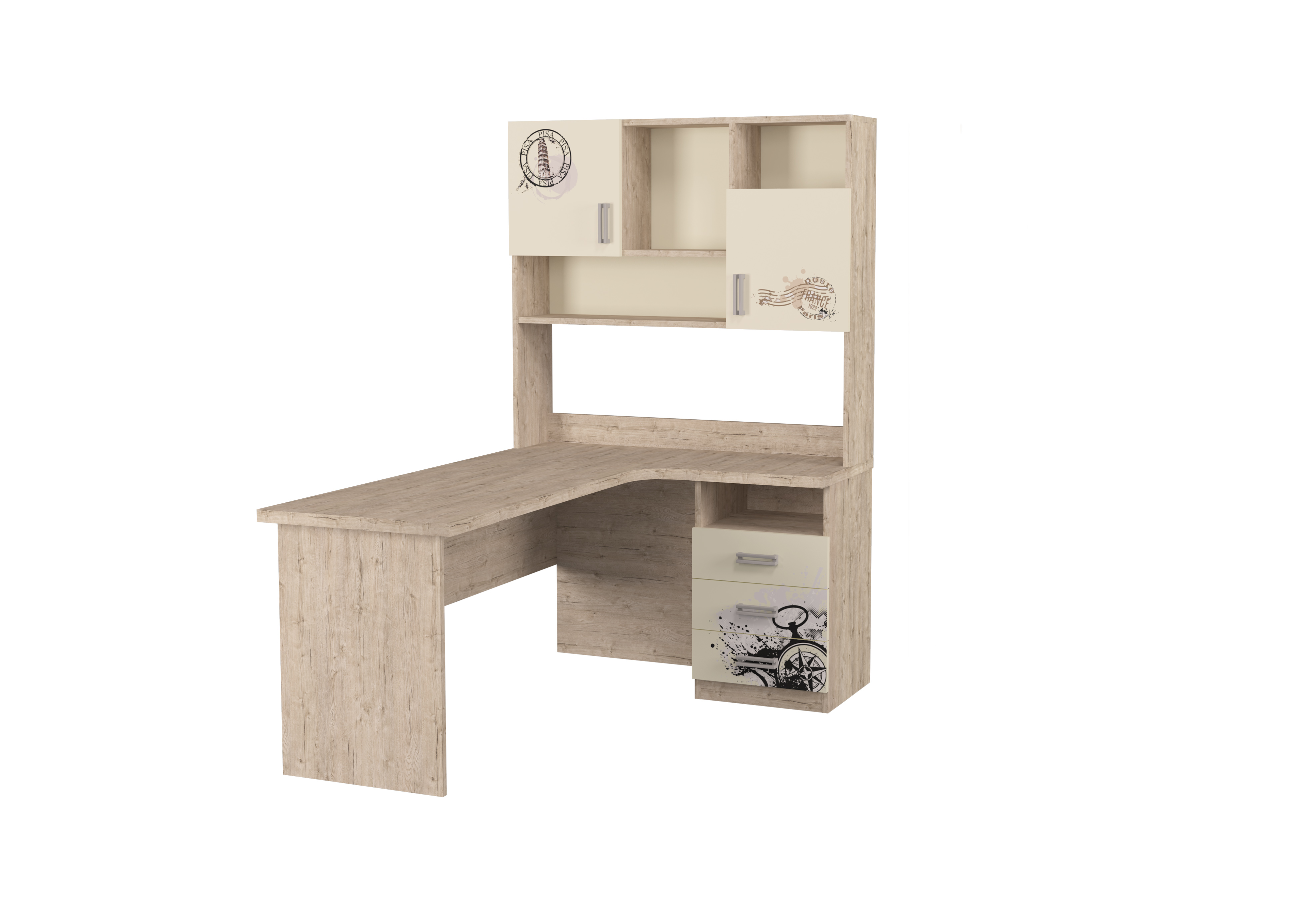 Стіл кутовий з надбудовою Дуб Шервуд + Ваніль