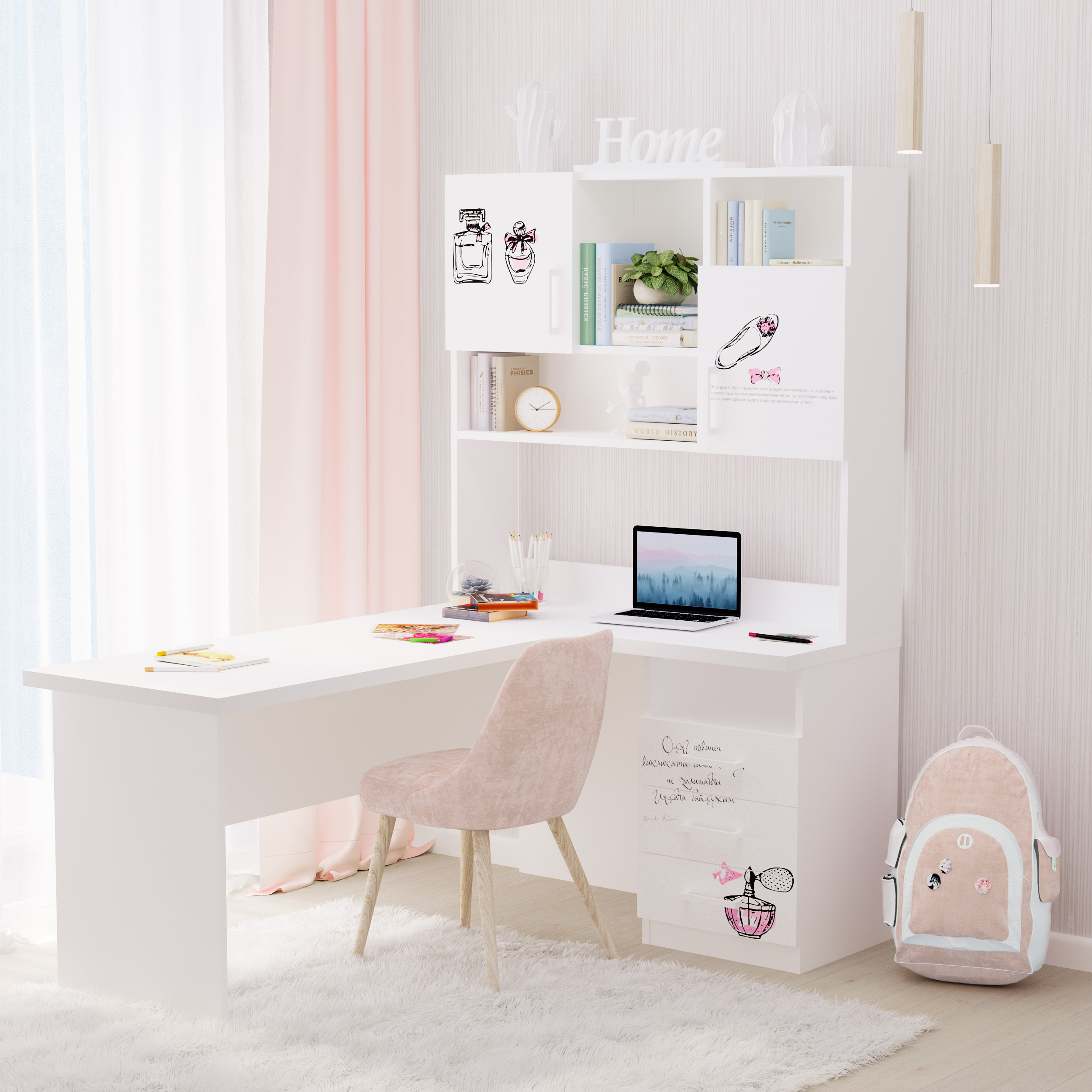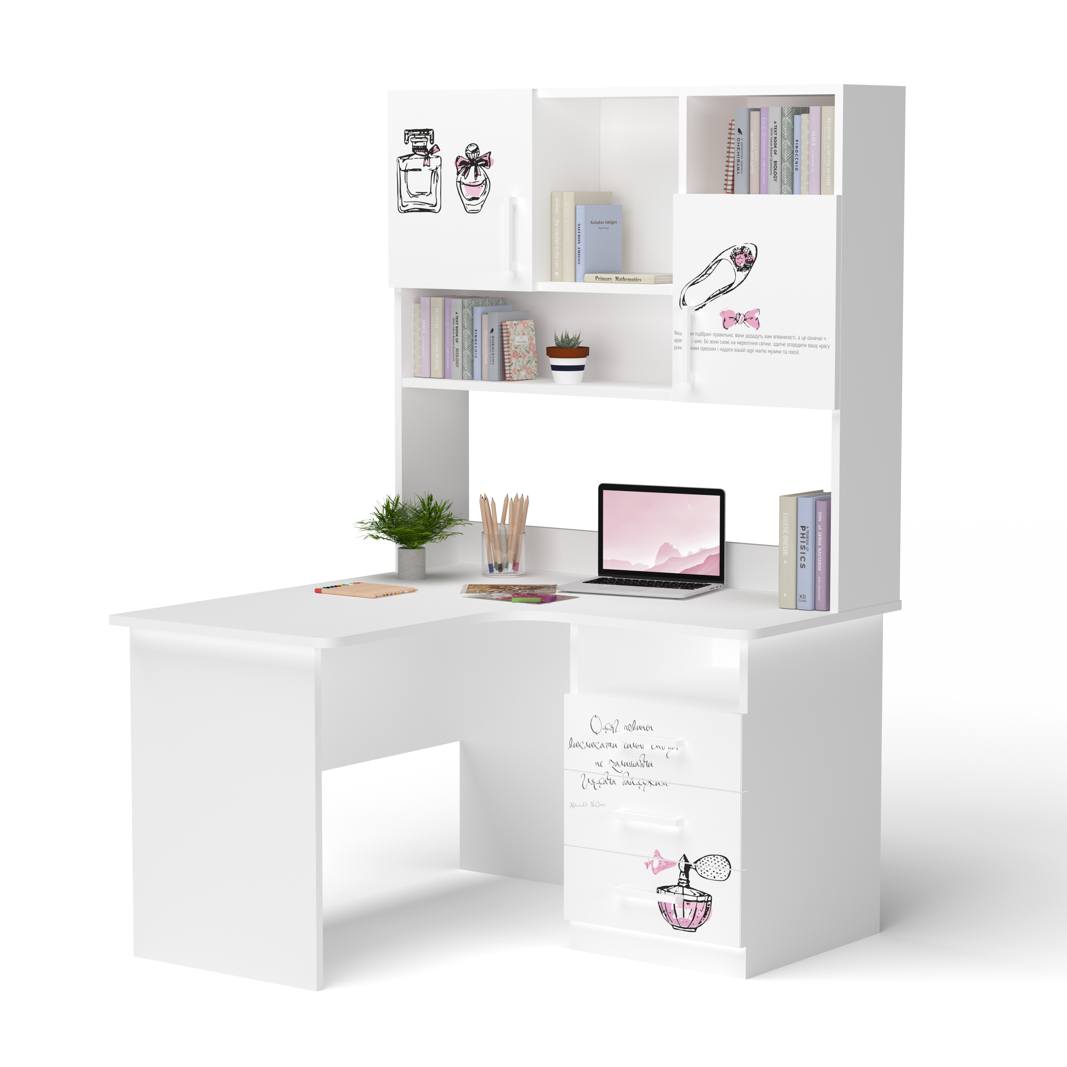 КУТОВИЙ СТІЛ З НАДБУДОВОЮ ДЛЯ ДІВЧИНКИ