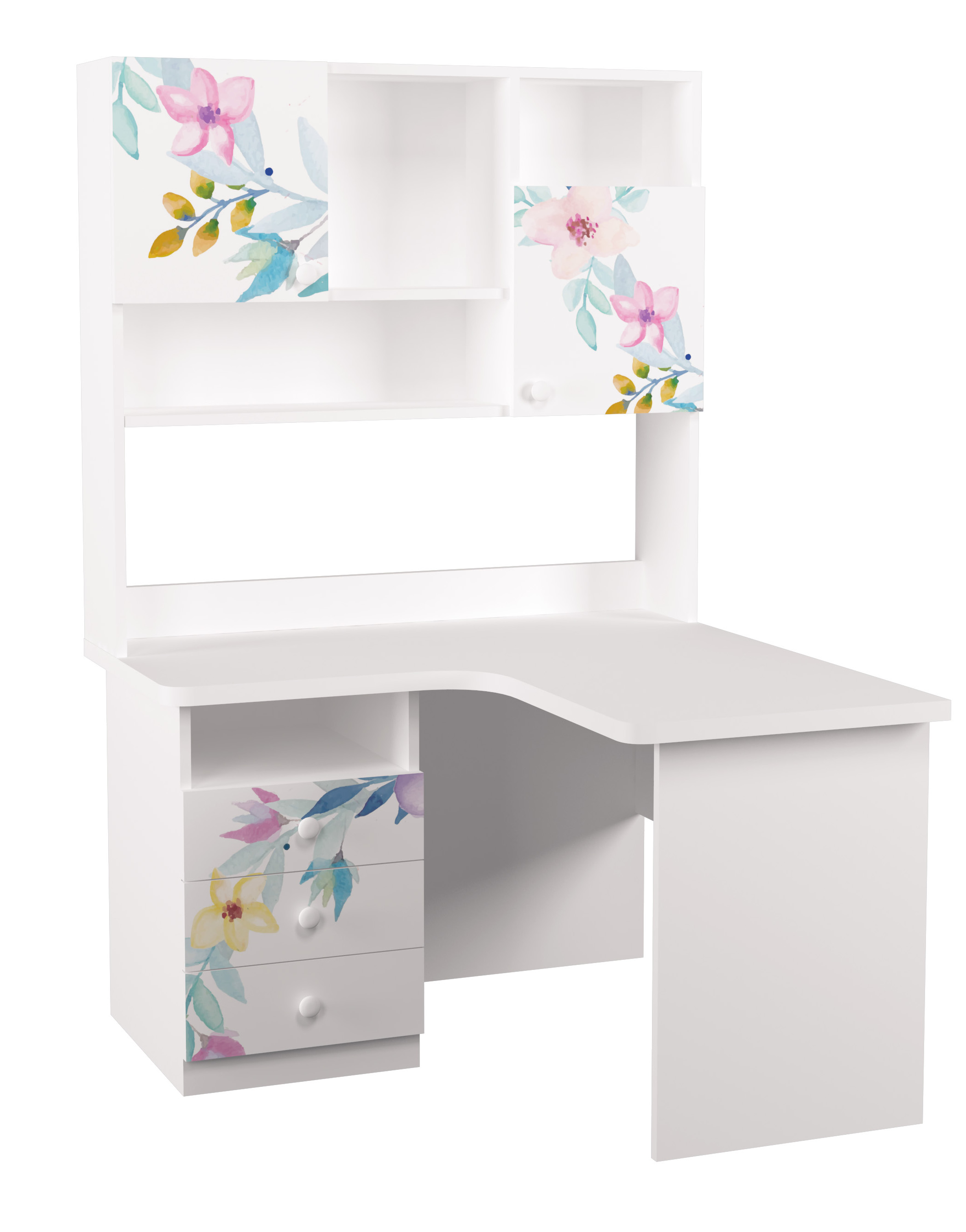 КУТОВИЙ СТІЛ З НАДБУДОВОЮ ДЛЯ ДІВЧИНКИ