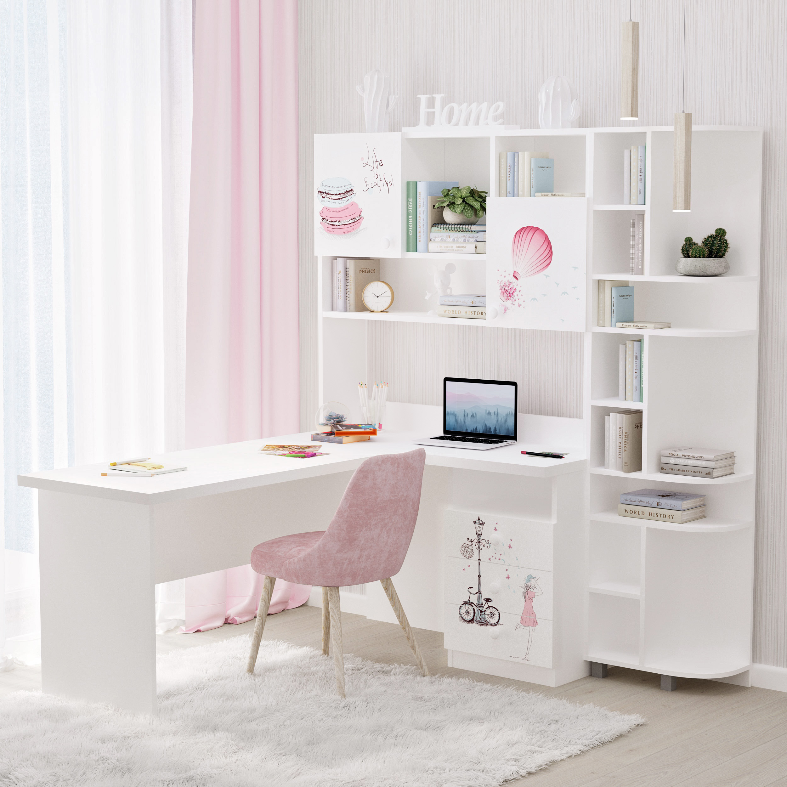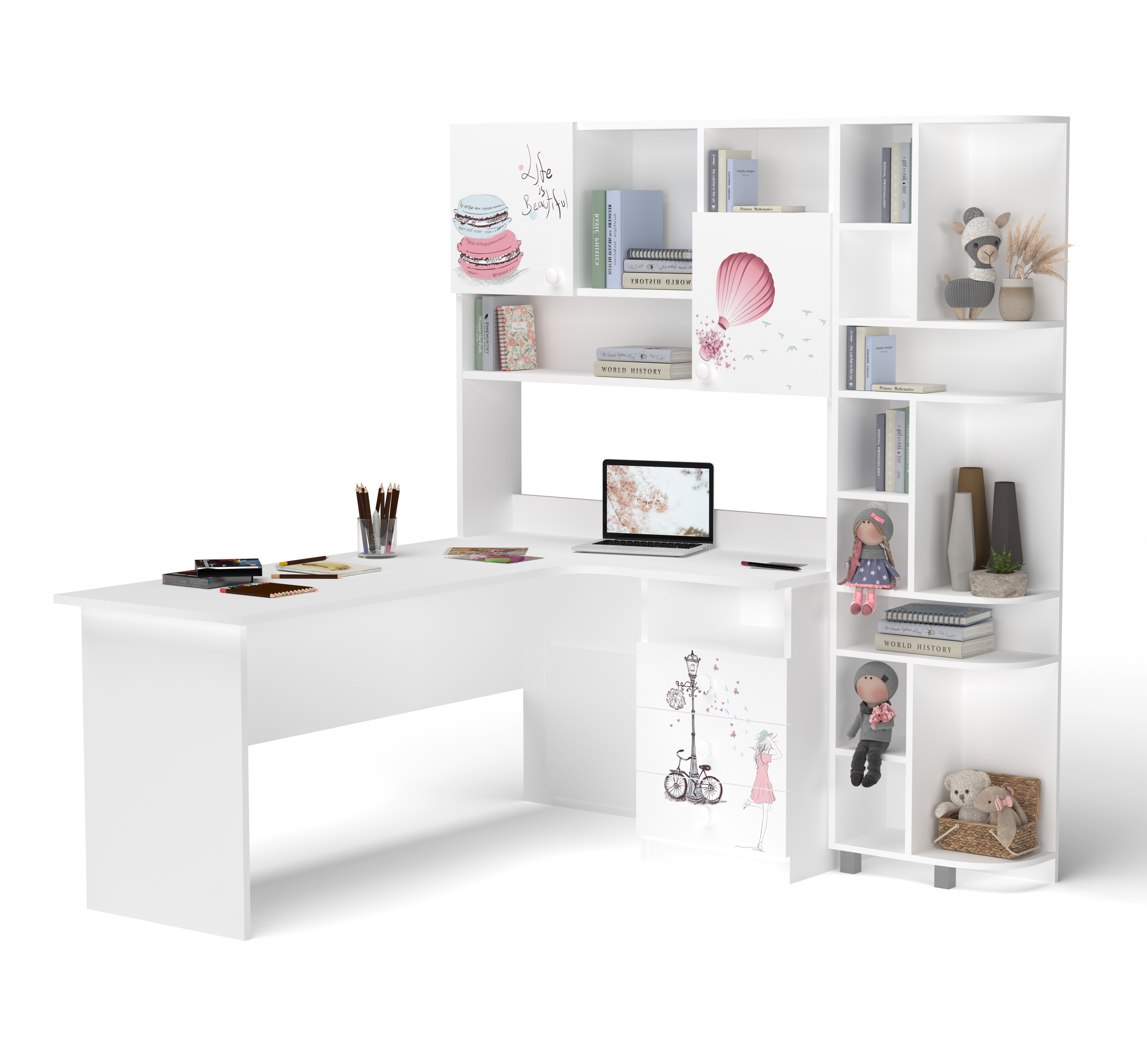КУТОВИЙ СТІЛ З НАДБУДОВОЮ ДЛЯ ДІВЧИНКИ