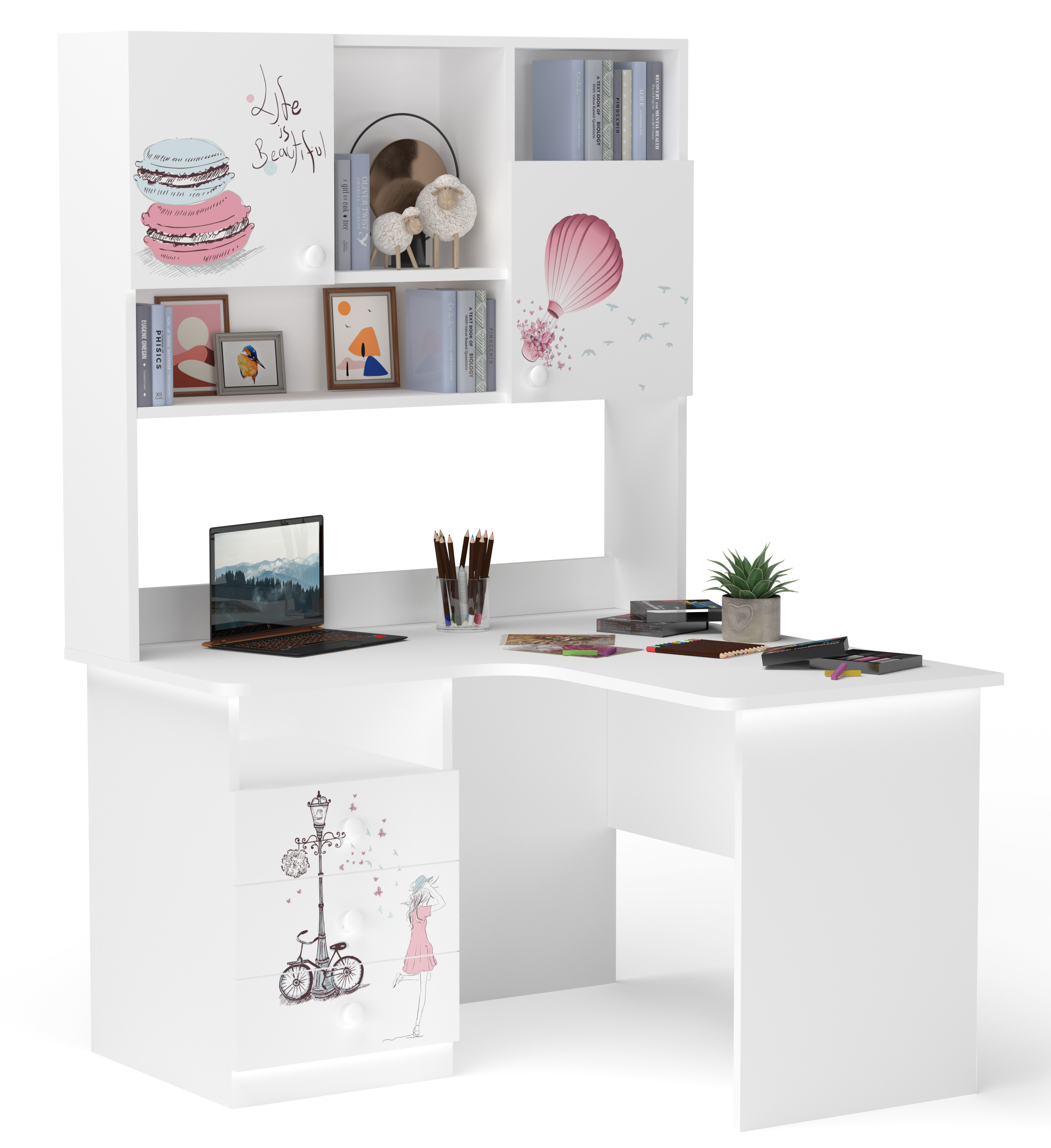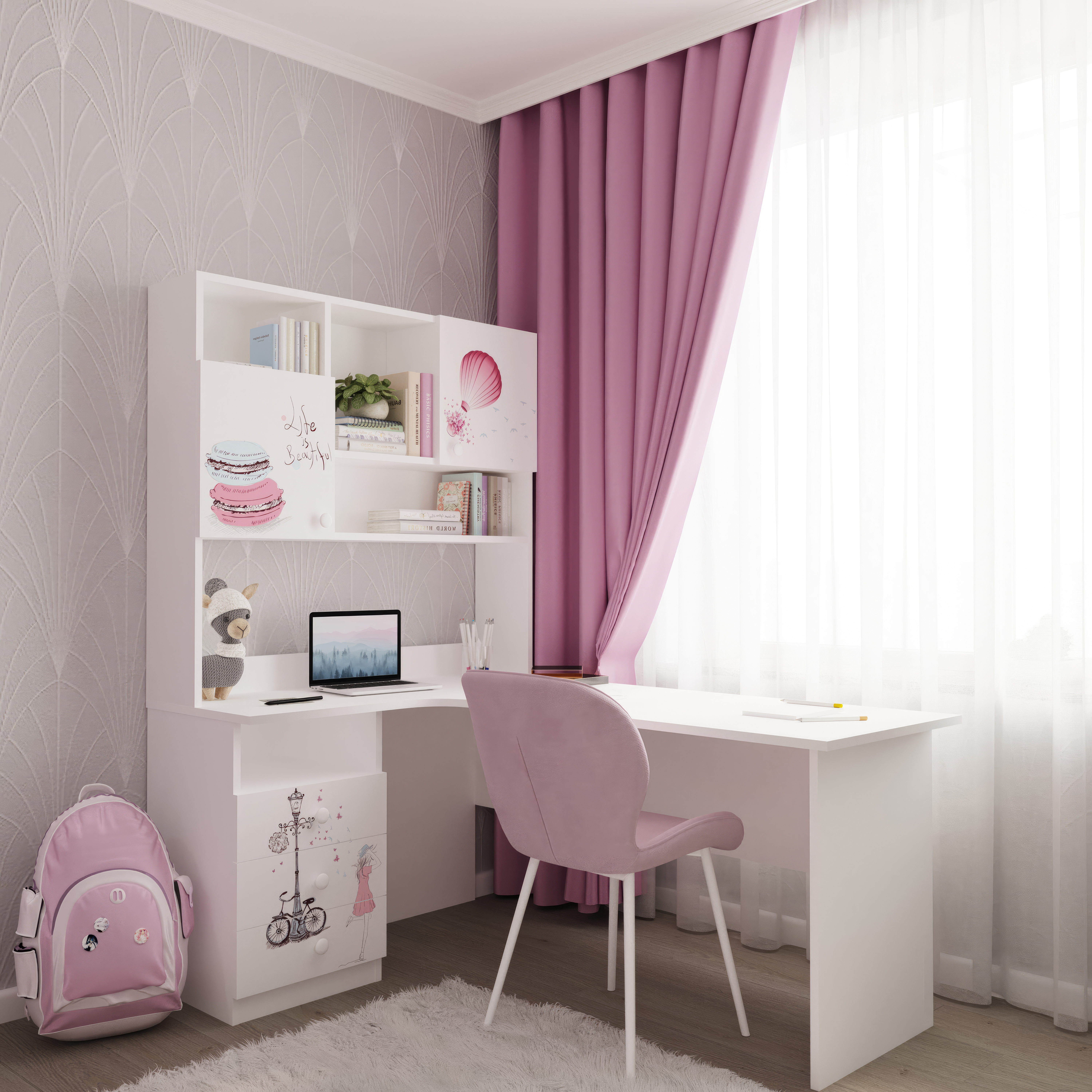 КУТОВИЙ СТІЛ З НАДБУДОВОЮ ДЛЯ ДІВЧИНКИ