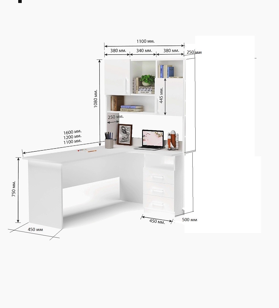 • Довжина стільниці по стороні з надбудовою - 110 см.