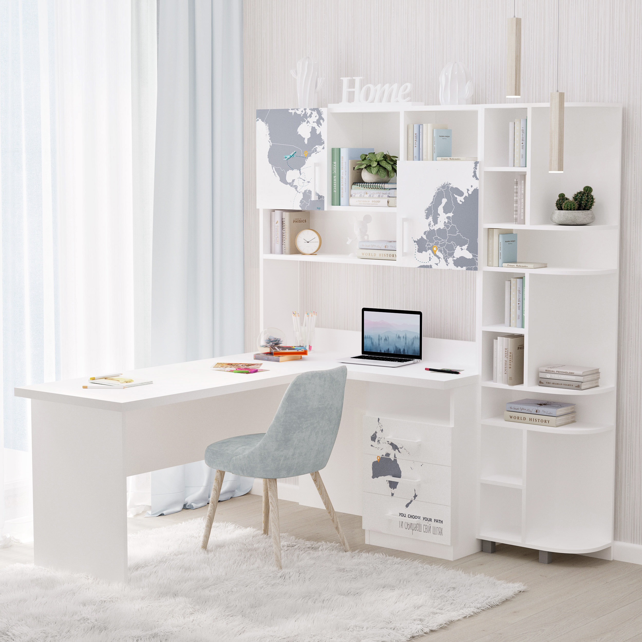 Письмовий стіл з кутовою стільницею і надбудовою та еркером буде дуже зручний для розміщення всього шкільного приладдя, матеріалів для творчості та хобі вашої дитини. А велика стільниця дозволить зручно розмістити на столі все необхідне.