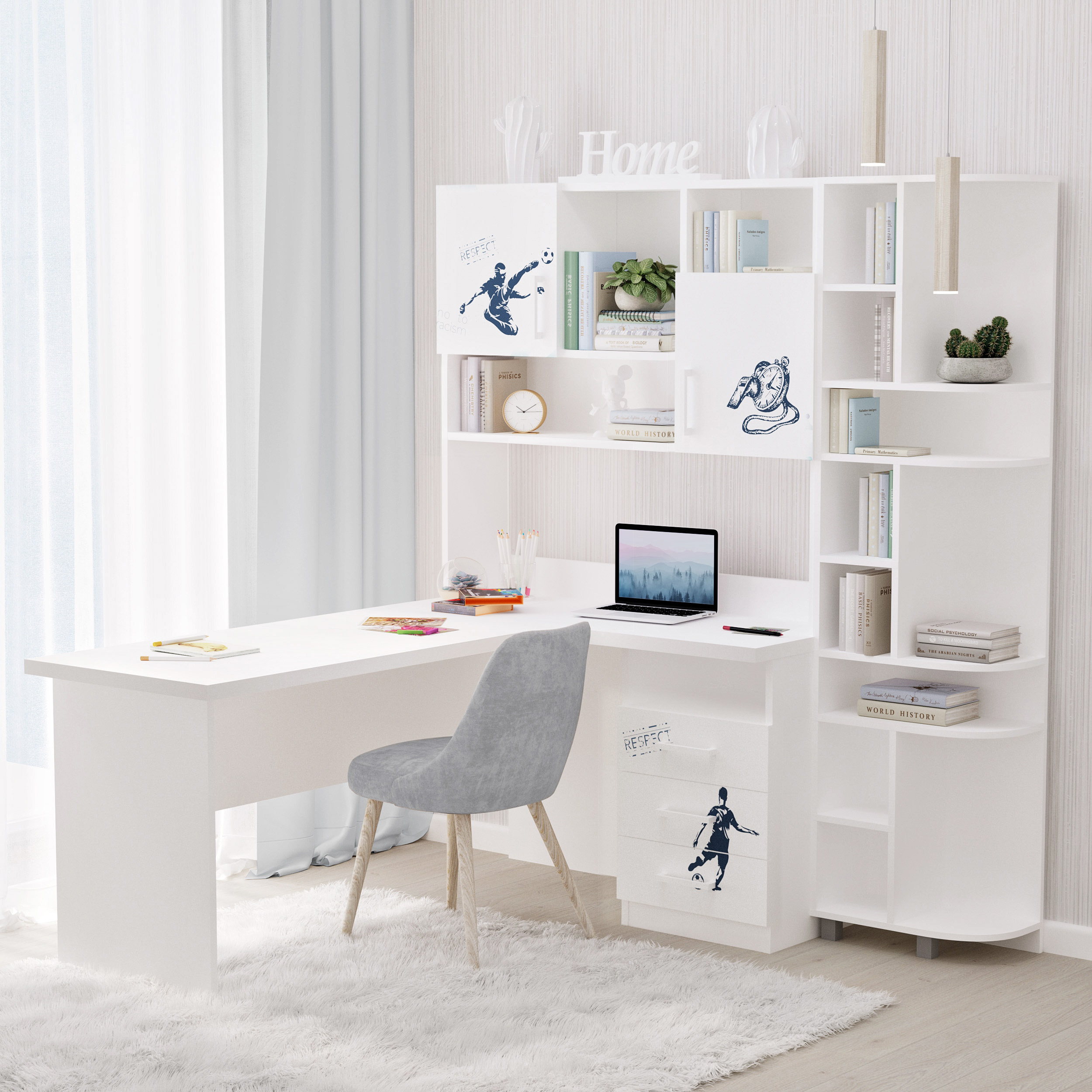Стіл кутовий з надбудовою та еркером "Футбол" білий
