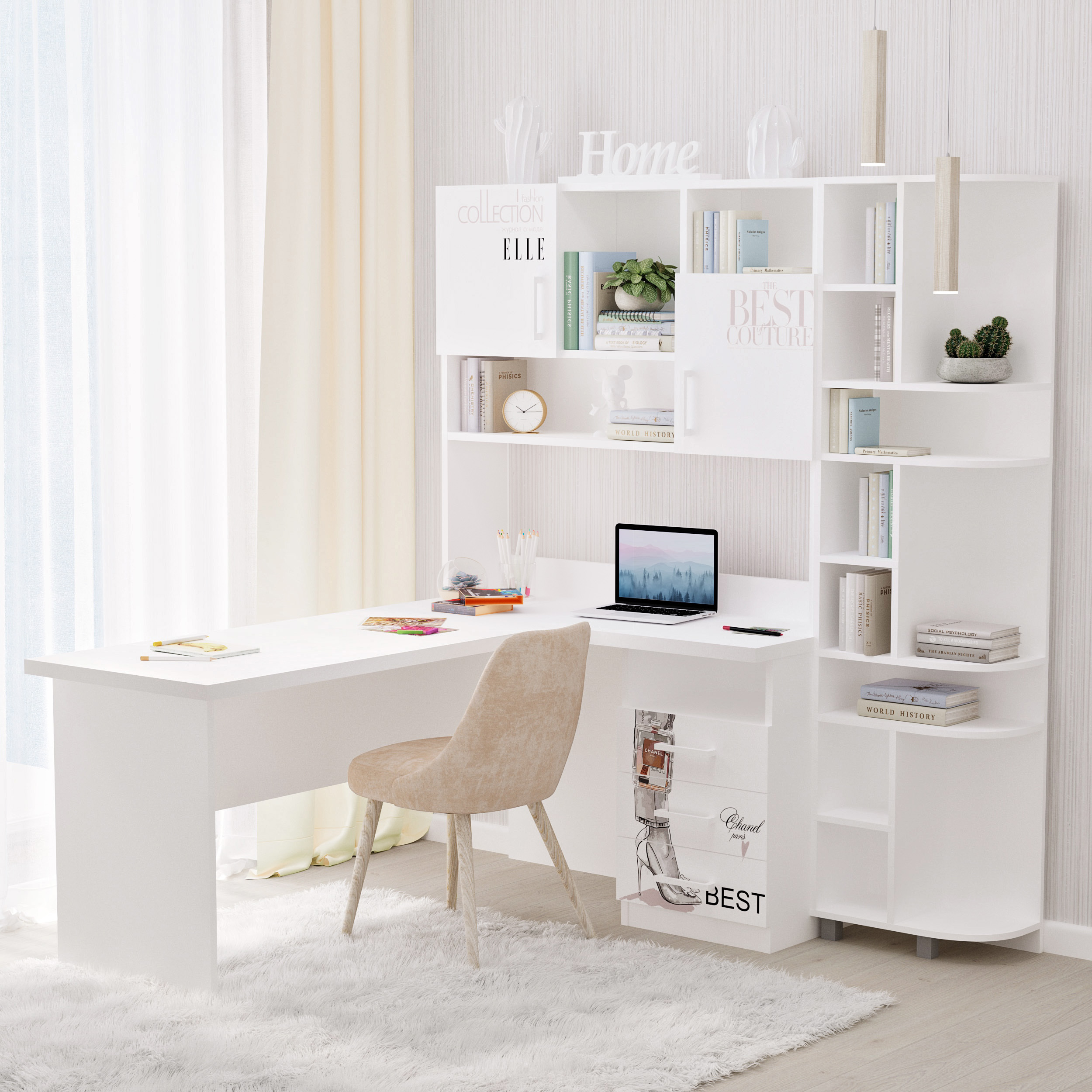 Письмовий стіл з кутовою стільницею і надбудовою та еркером буде дуже зручний для розміщення всього шкільного приладдя, матеріалів для творчості та хобі вашої дитини. А велика стільниця дозволить зручно розмістити на столі все необхідне.