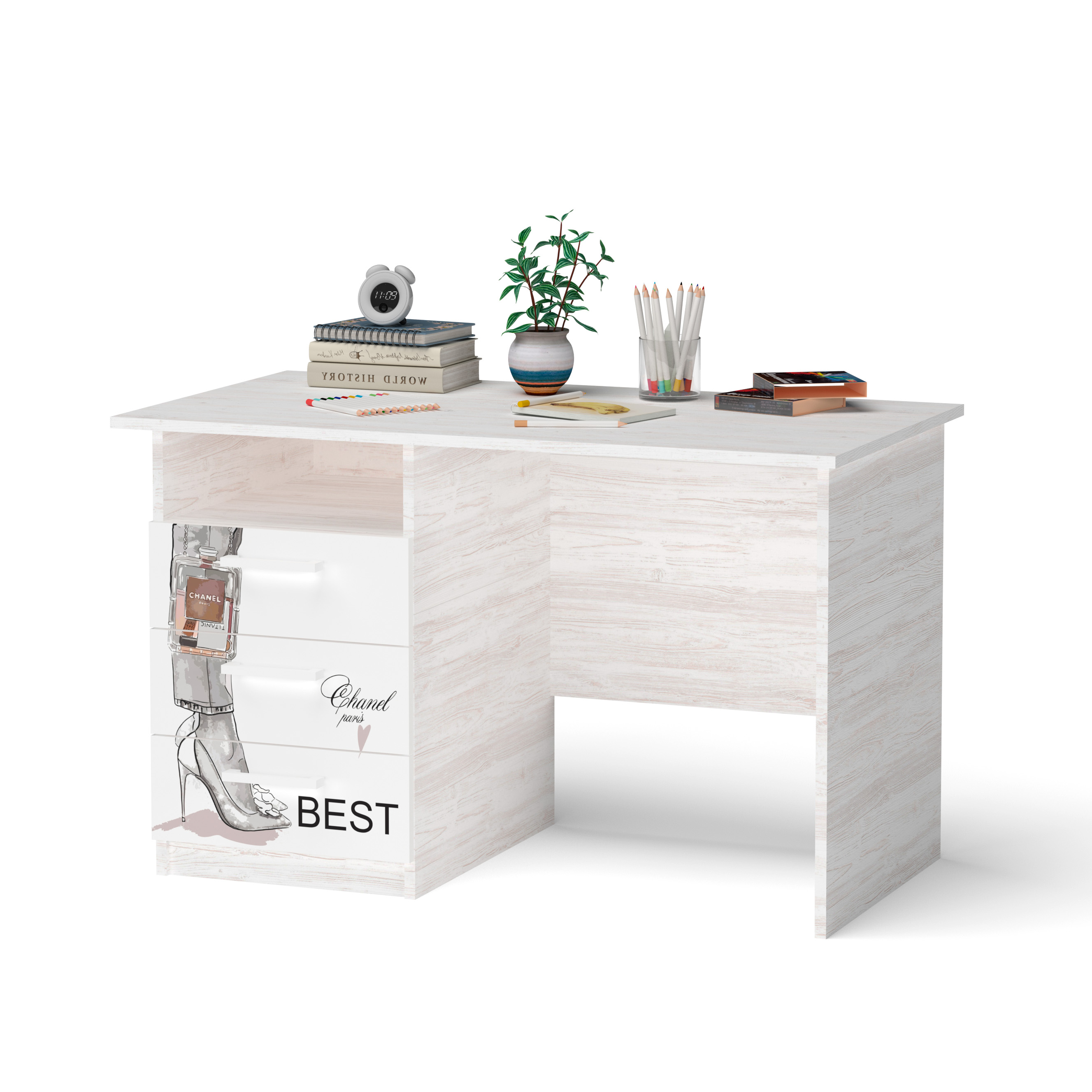 Письмовий стіл із широкою стільницею та трьома зручними шухлядами буде компактним і в той же час комфортним місцем для навчання вашої дитини та зберігання її шкільного приладдя.