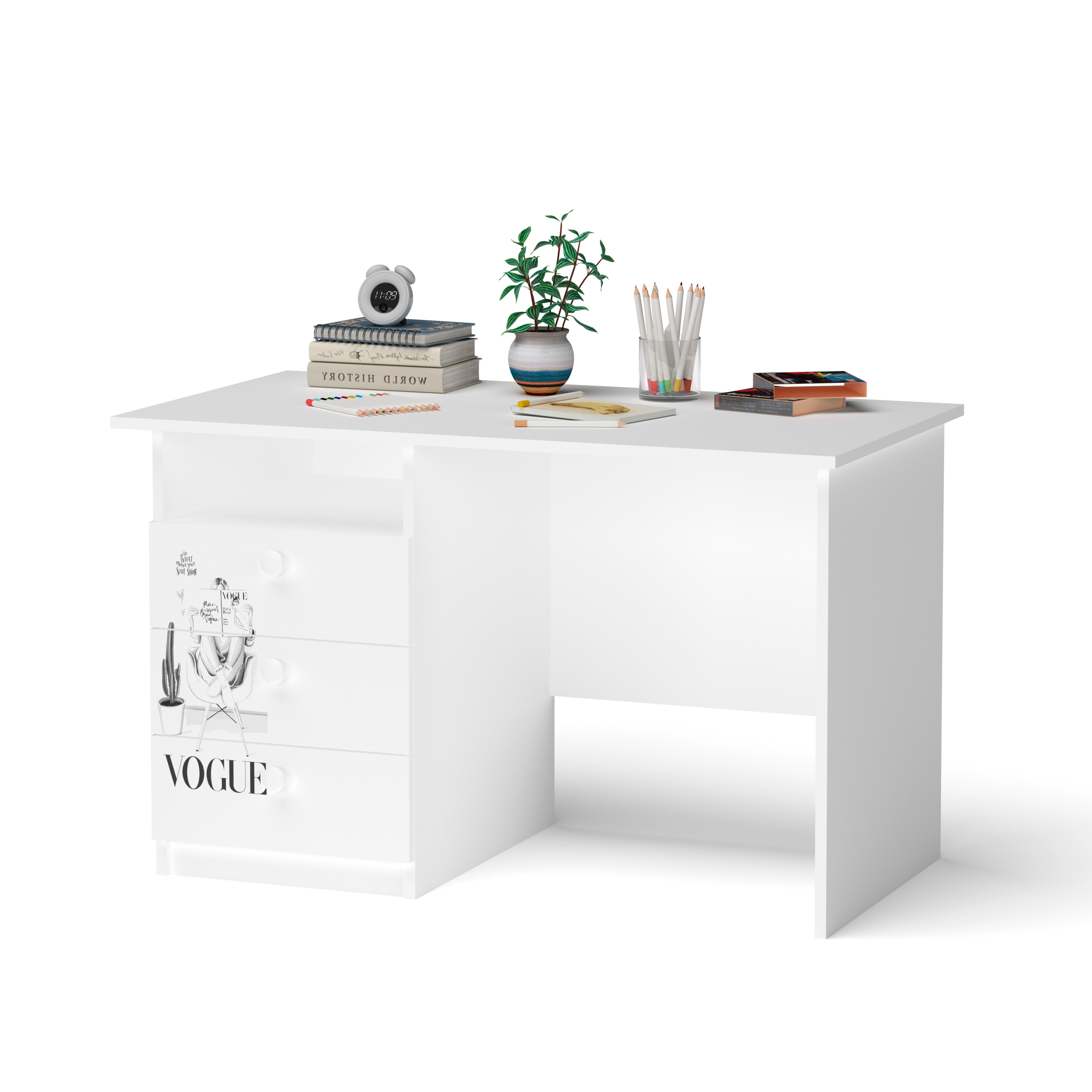 Письмовий стіл із широкою стільницею та трьома зручними шухлядами буде компактним і комфортним місцем для навчання вашої дитини та зберігання її шкільного приладдя.