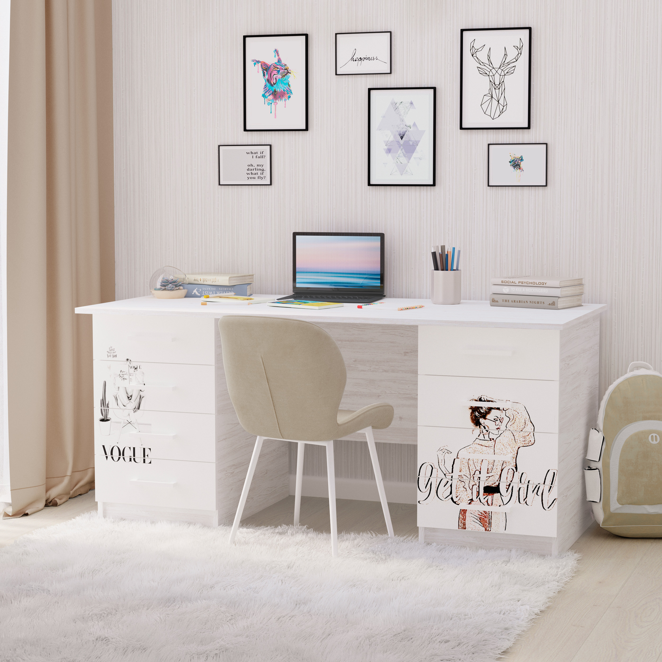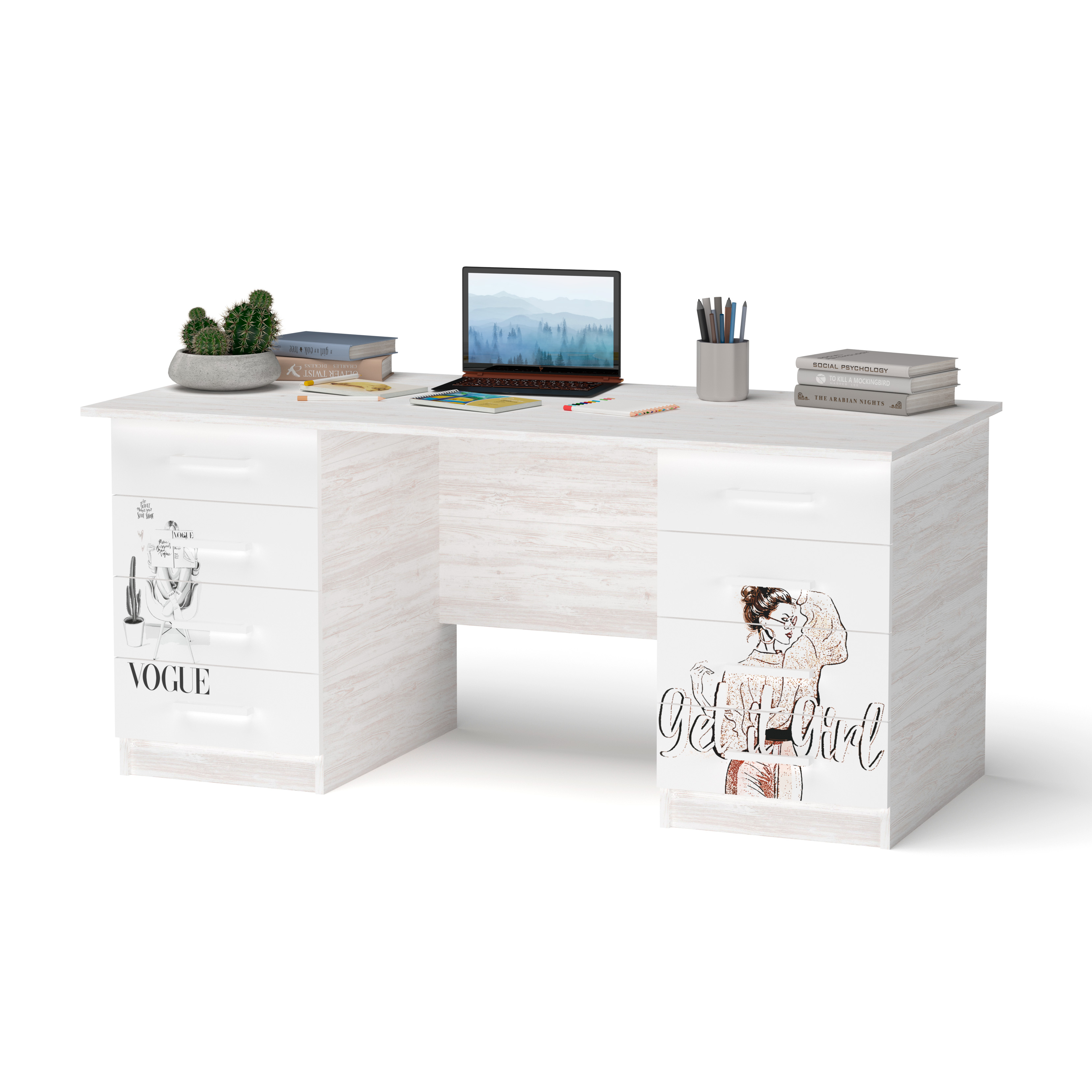 Письмовий стіл з широкою стільницею та двома тумбами. В кожній тумбі по чотири зручні шухляди.