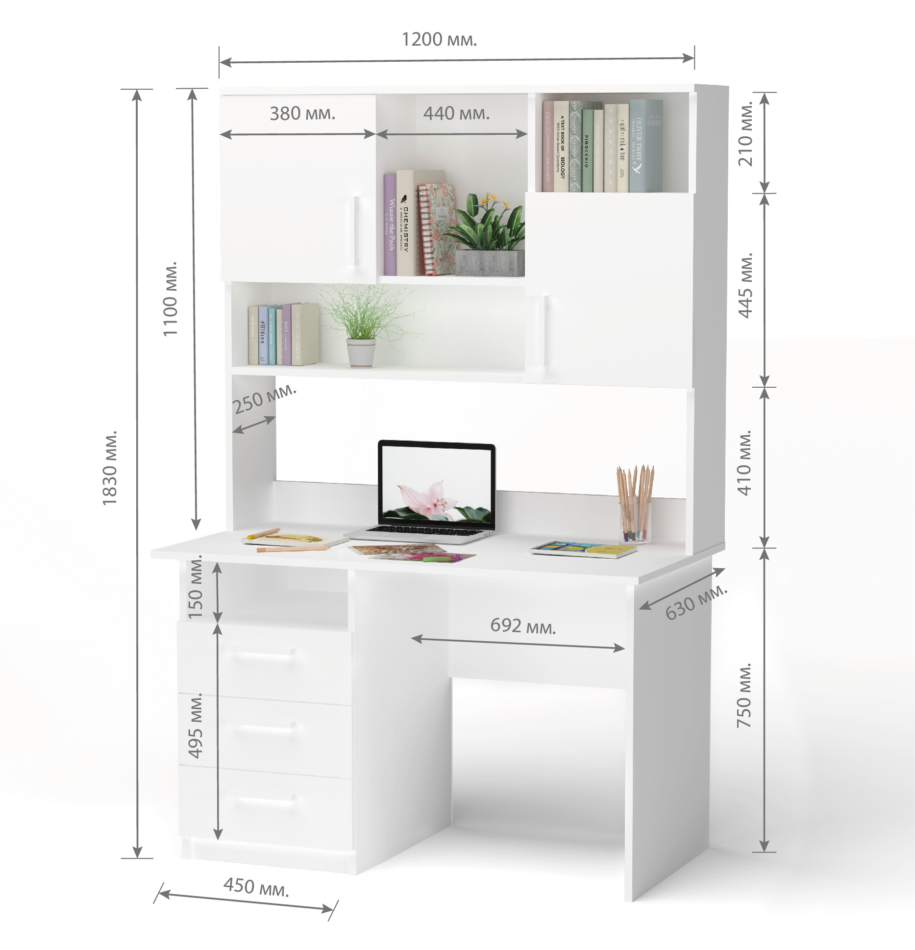 • Висота столу з надбудовою - 183 см;